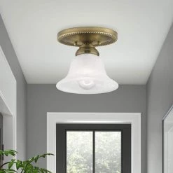 Edgemont 1 Light Antique Brass Semi Flush Mount by Livex Lighting