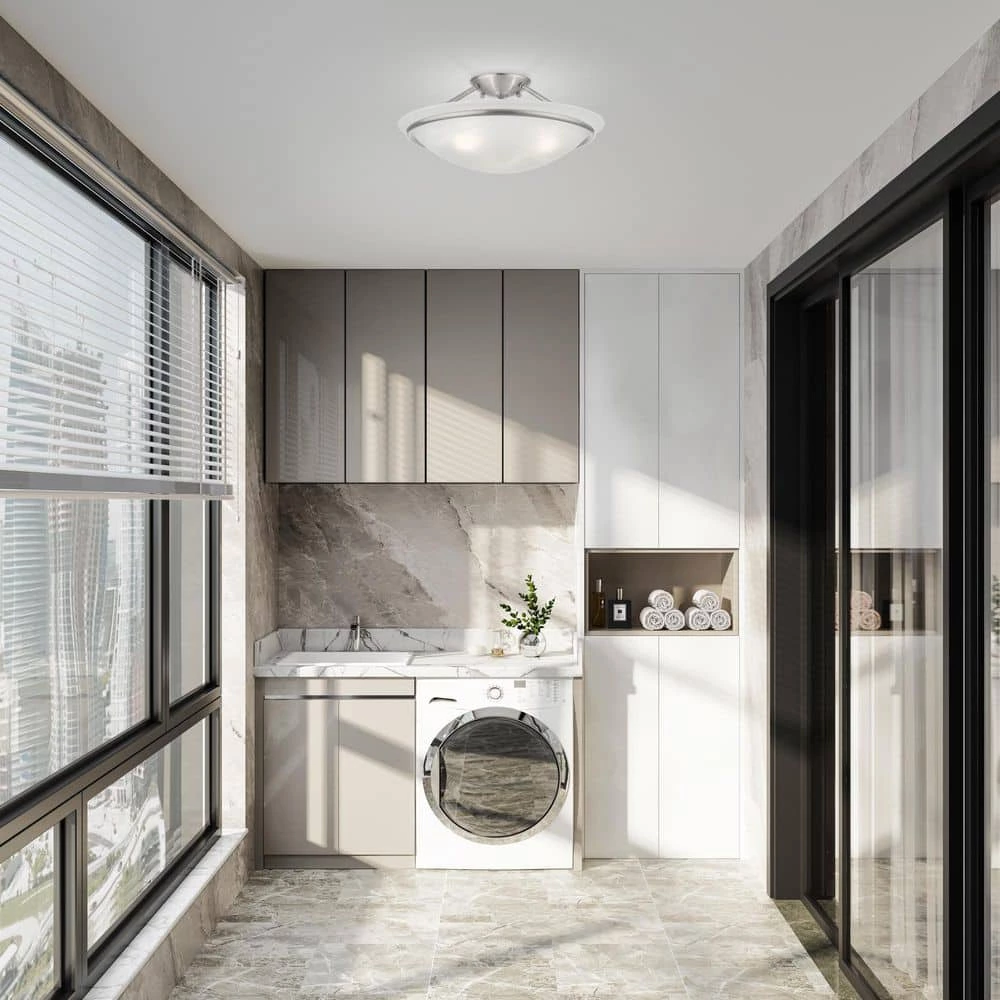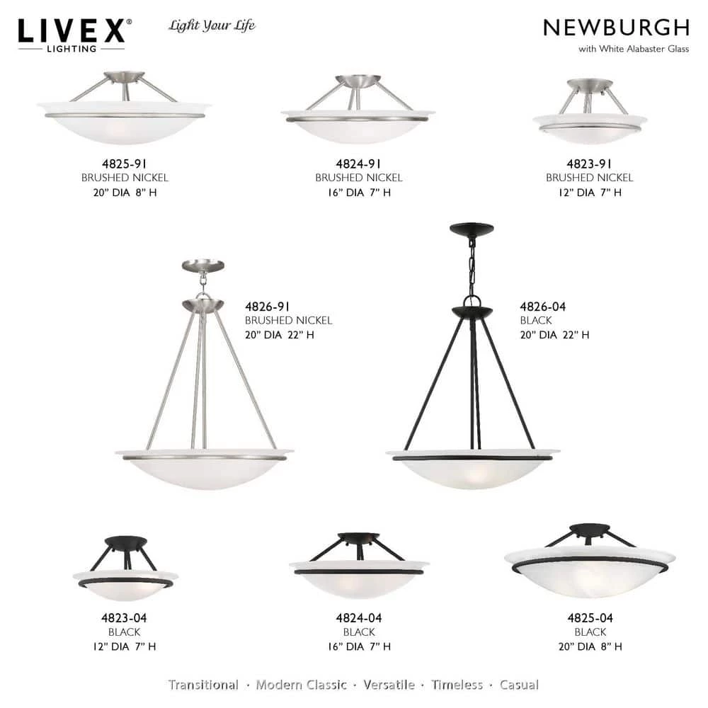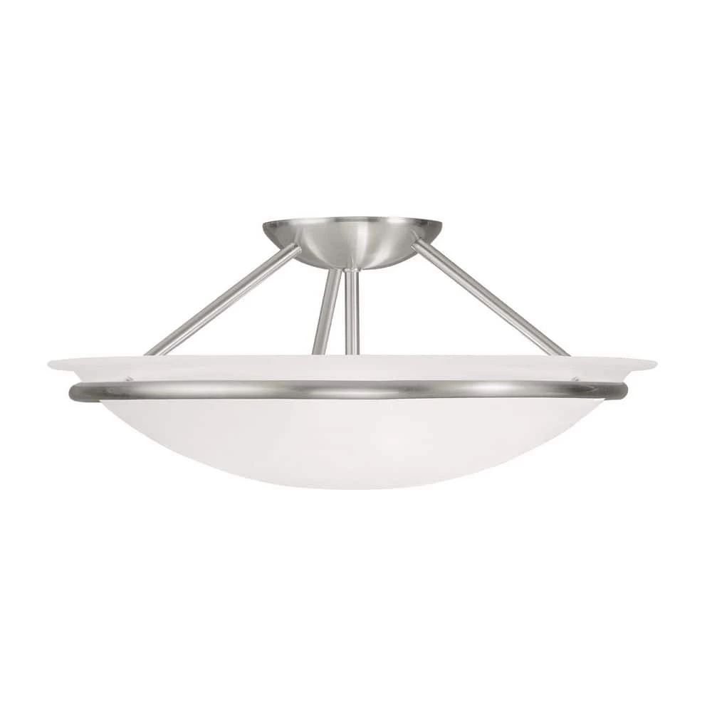 Livex Lighting is well known for quality, style and value. This three light semi flush mount features a lustrous brushed nickel finish with light glowing from within the large white alabaster glass bowl shape shade. complete a kitchen, bedroom, or any room in your house with this beautiful semi flush mount.