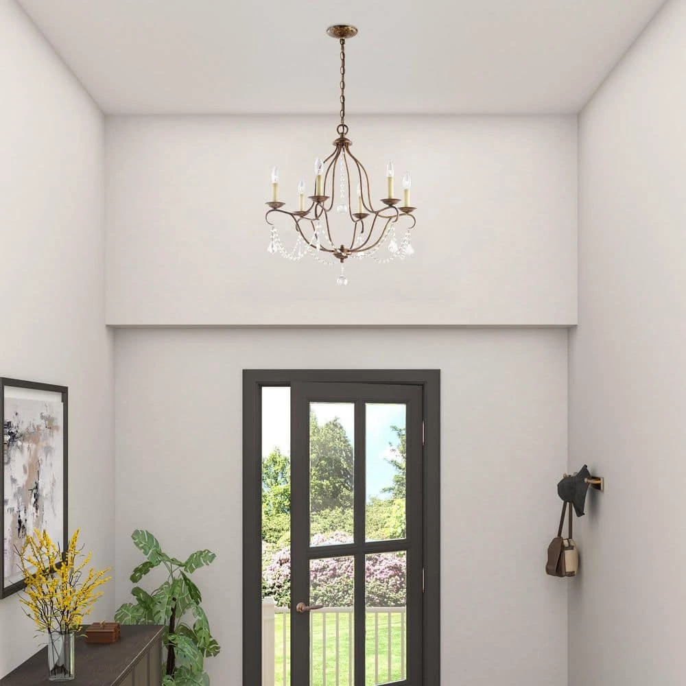 - Requires (6) 60 Watt Candelabra Base Bulbs