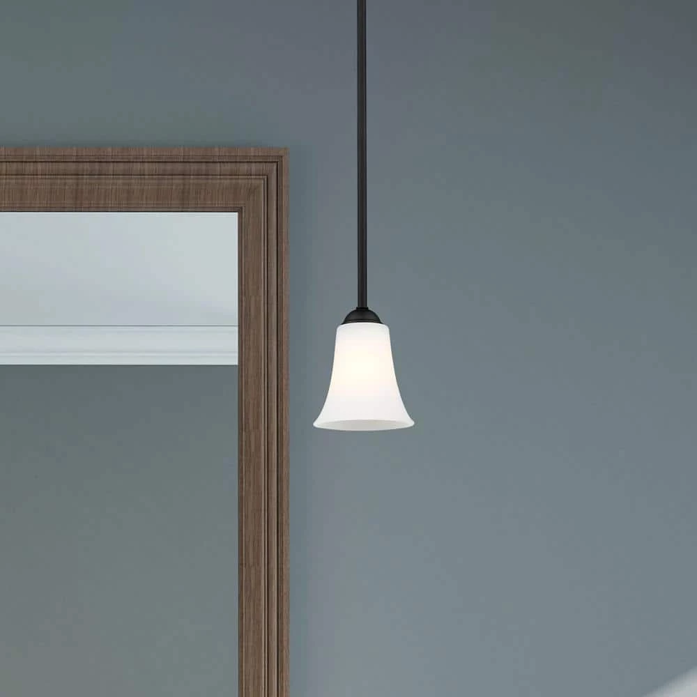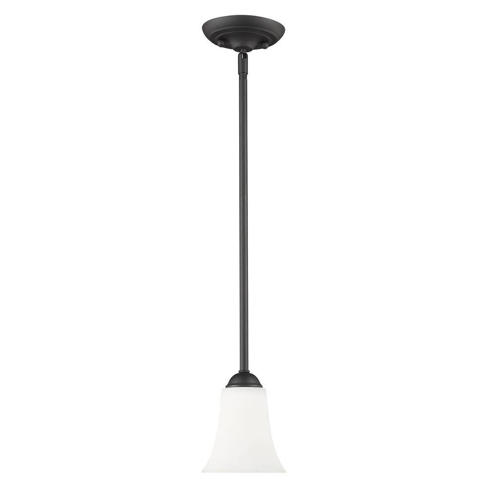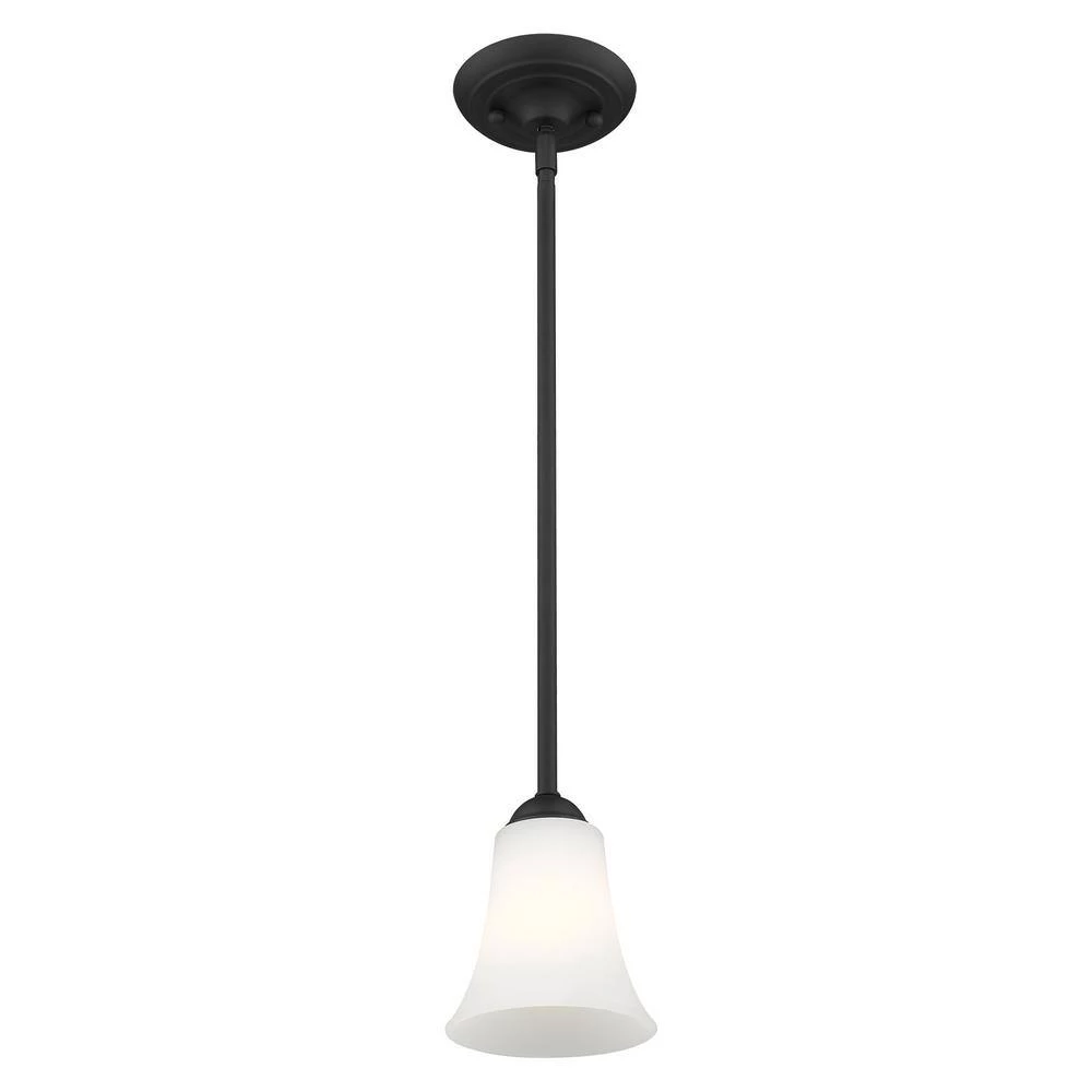 This slim, trim mini pendant from the Ridgedale collection features a sophisticated look. This fabulous mini pendant, features a black finish, subtle styling and hand blown satin opal white glass. Illuminate a counter space, breakfast nook and more with this attractive piece.