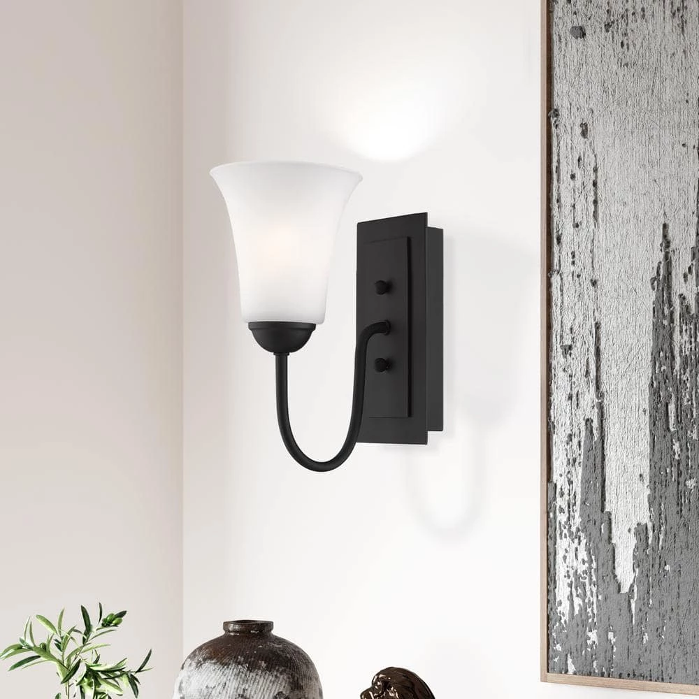 Bring a simple, yet eye-catching style into your home with this lovely wall sconce. The geometric design will add interest to foyers, dining rooms or any wall area that needs a little light. Painted in a black finish, this design will bring light for years to come.