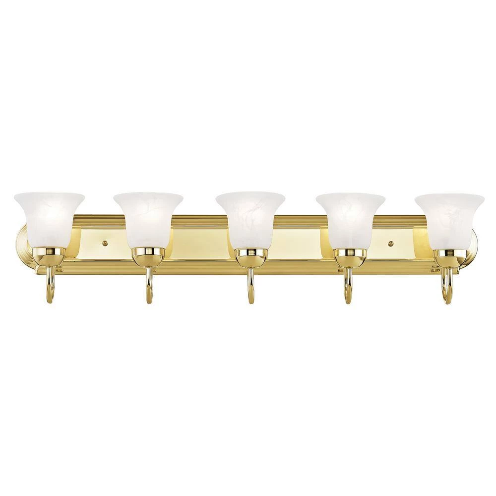 Livex Lighting is well known for quality, style and value. For a classic and clean look in the bathroom, this bath bar provides fantastic, versatile lighting with flawless precision. Our polished brass finish is combined with white alabaster glass for an elegant purity that will bring out the best in your bathroom. This well-rounded fixture is sure to satisfy your lighting needs.