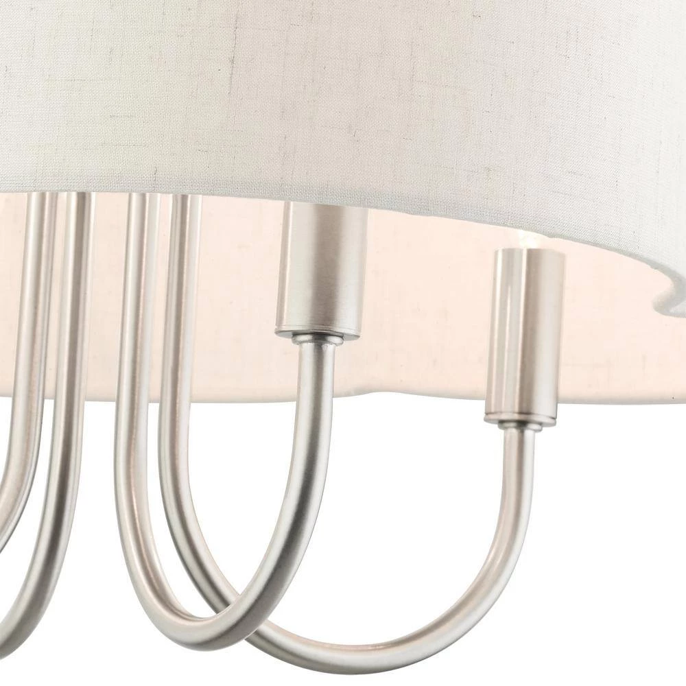 Livex Lighting is well known for quality, style and value. The Solstice series evokes a French country chic vibe. This 4-light pendant chandelier features a beautiful hand crafted scalloped shaped, oatmeal colored hardback shade situated on an elegantly curved frame. It is shown in a brushed nickel finish and is the perfect finishing touch for a traditional, transitional or contemporary style interior. Enjoy this design in the living room, bedroom, dining room or over your kitchen island. This well-rounded fixture is sure to satisfy your lighting needs.