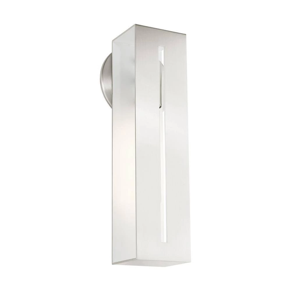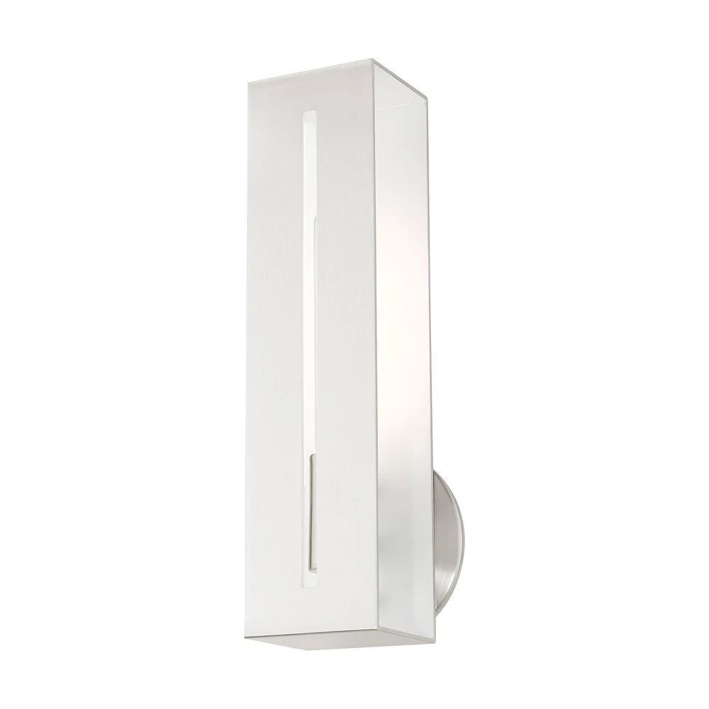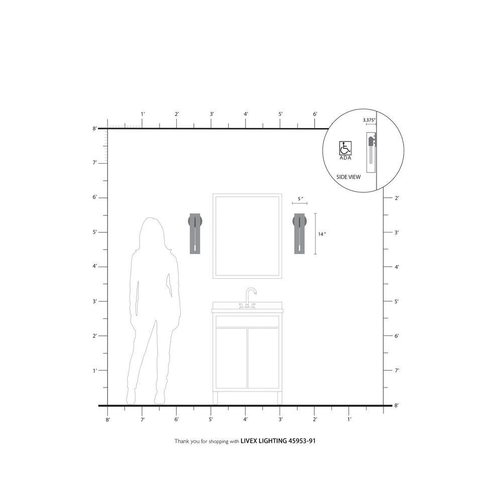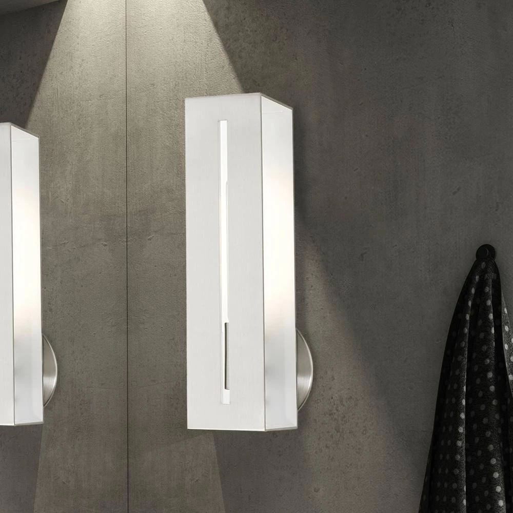 Livex Lighting is well known for quality, style and value. Inspired by the modern skyscraper design, the architectural lines of the Soma collection are truly suitable for urban and contemporary environments such as an industrial loft. The exposed bulbs make a beautiful accompaniment to the distinctive contrasting finishes of this rectilinear piece. This contemporary 2 light vanity sconce comes in a brushed nickel finish with a shiny white inside. It fits perfectly in a minimalistic modern bathroom, hallway or bedroom. This well-rounded fixture is sure to satisfy your lighting needs.
