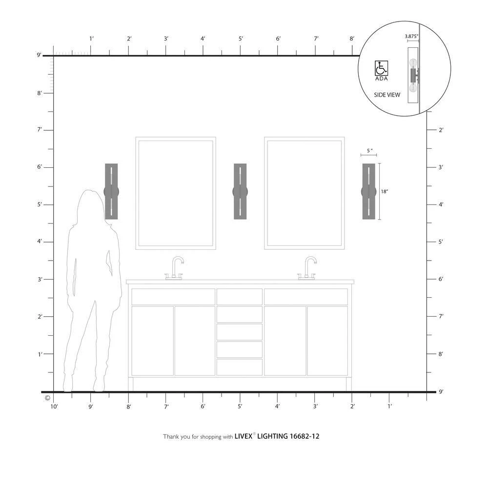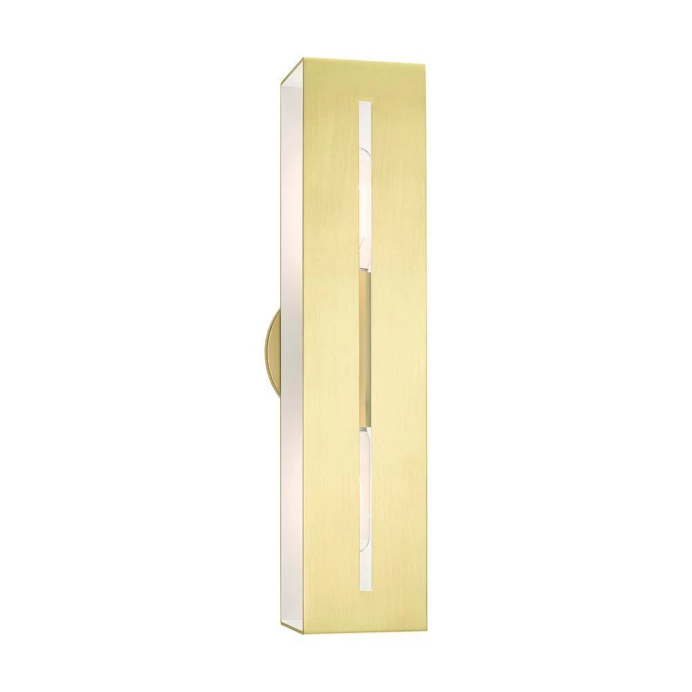 Livex Lighting is well known for quality, style and value. Inspired by the modern skyscraper design, the architectural lines of the Soma collection are truly suitable for urban and contemporary environments such as an industrial loft. The exposed bulbs make a beautiful accompaniment to the distinctive contrasting finishes of this rectilinear piece. This contemporary 2 light vanity sconce comes in a satin brass finish with a shiny white inside. It fits perfectly in a minimalistic modern bathroom, hallway or living room. This well-rounded fixture is sure to satisfy your lighting needs.