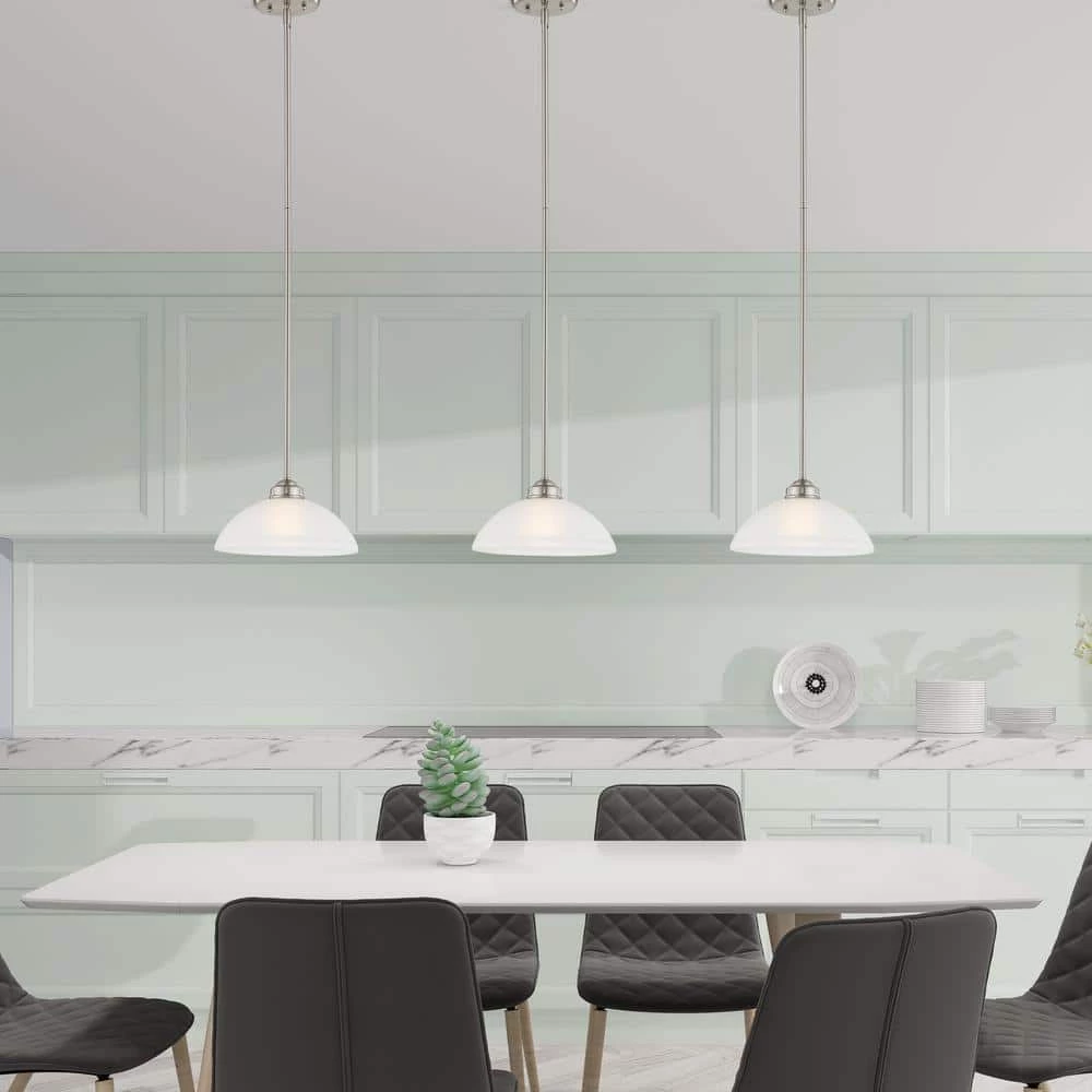 Livex Lighting is well known for quality, style and value. Smooth lines meet gorgeous materials in our Somerset collection. The sleek design will add contemporary class and appeal to your home. This one light mid pendant features a brushed nickel finish with satin glass. This well-rounded fixture is sure to satisfy your lighting needs.