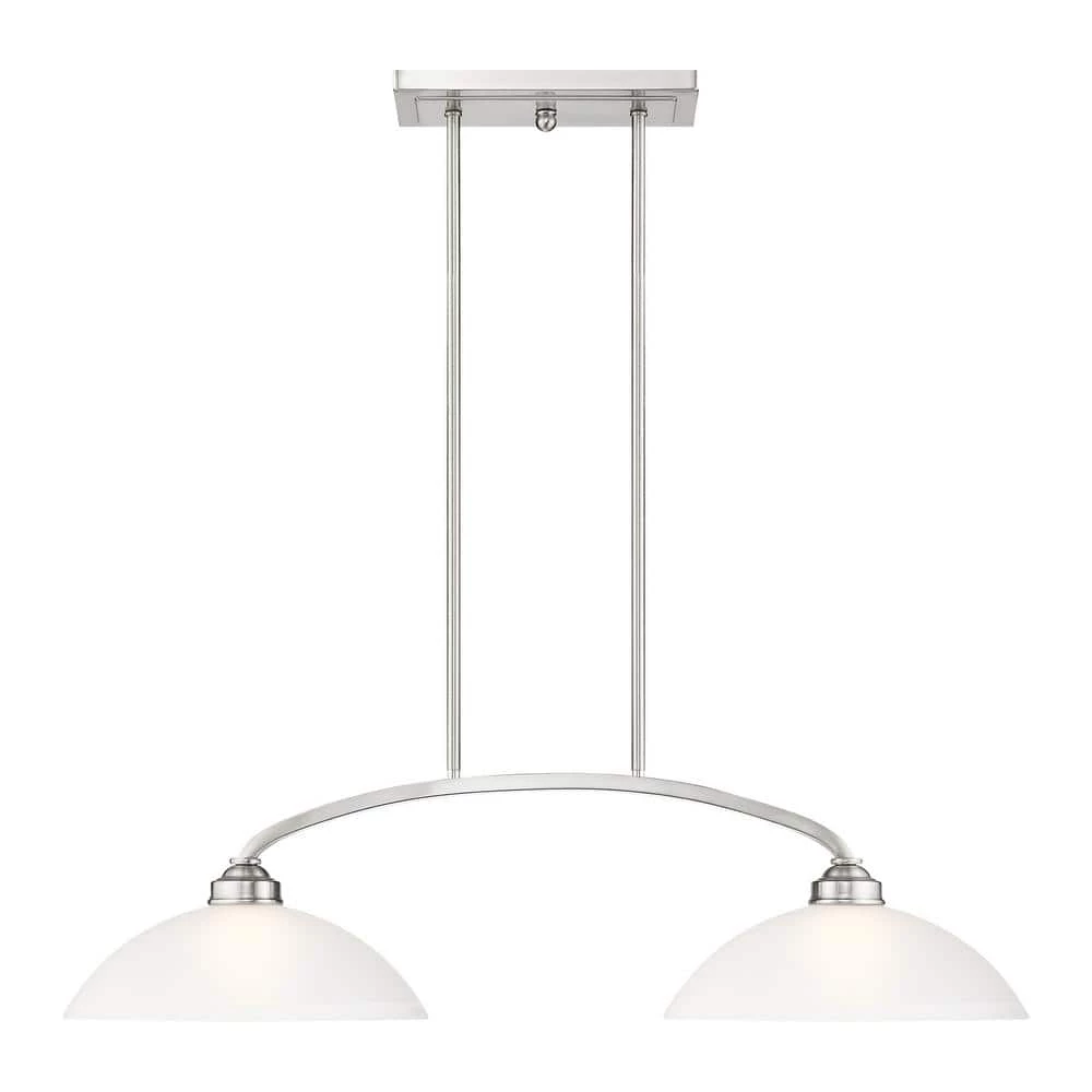 Add transitional illumination to your space with this 2-light island pendant from the Providence Collection. The satin glass and brushed nickel finish make it perfect for contemporary and minimalist interiors. Eye-catching and stylish, this pendant adds visual interest to a hallway, kitchen island or dining room. It uses two incandescent bulbs (sold separately) and includes all the hardware for an easy installation.