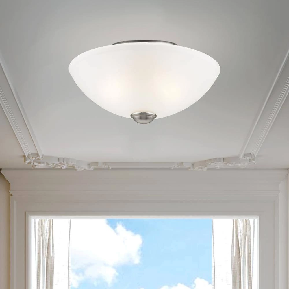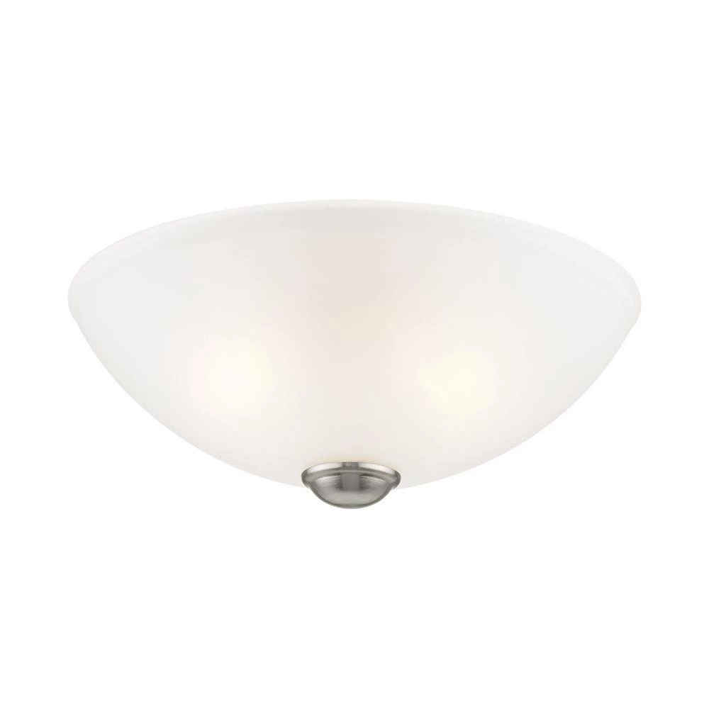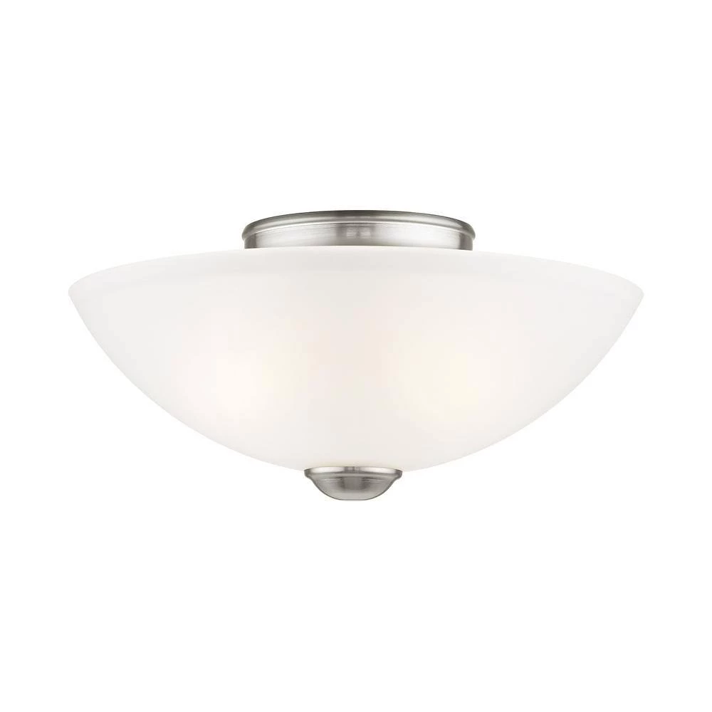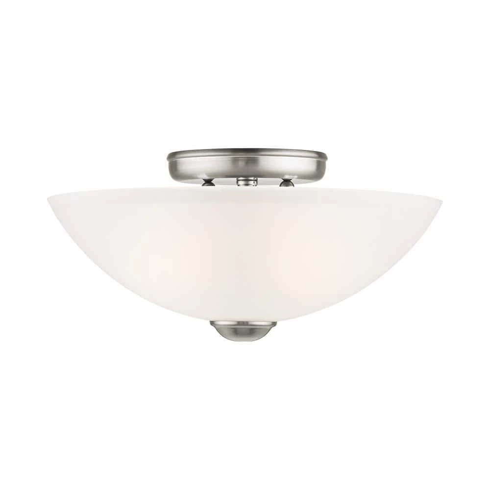 Livex Lighting is well known for quality, style and value. Smooth lines meet gorgeous materials in our Somerset collection. The sleek design will add contemporary class and appeal to your home. This two light ceiling mount features a brushed nickel finish with satin glass. This well-rounded fixture is sure to satisfy your lighting needs.