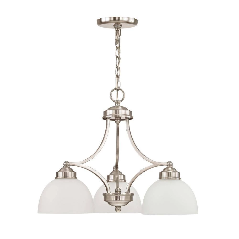 Livex Lighting is well known for quality, style and value. Smooth lines meet gorgeous materials in our Somerset collection. The sleek design will add contemporary class and appeal to your home. This 3 light chandelier features a brushed nickel finish with satin glass. This well-rounded fixture is sure to satisfy your lighting needs.
