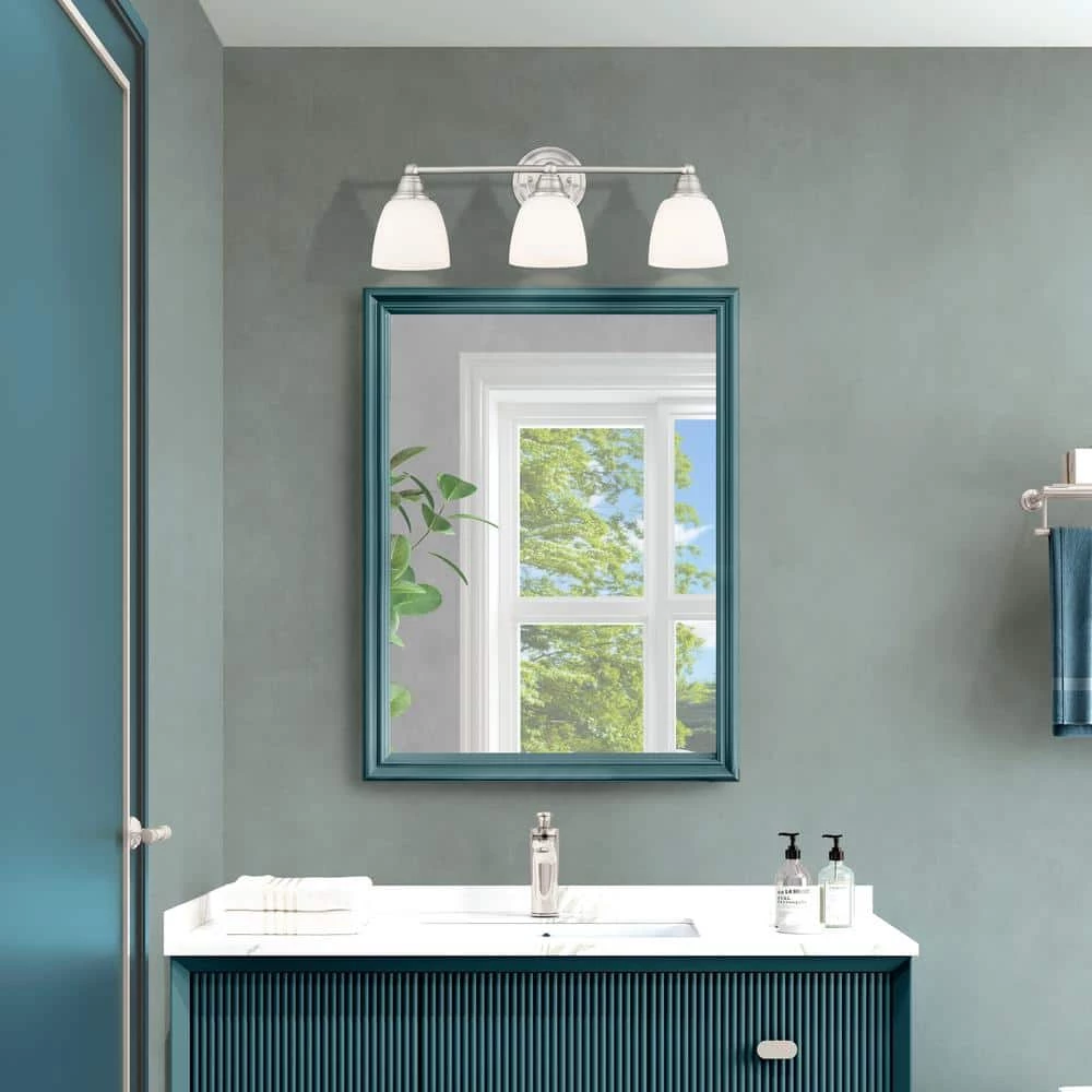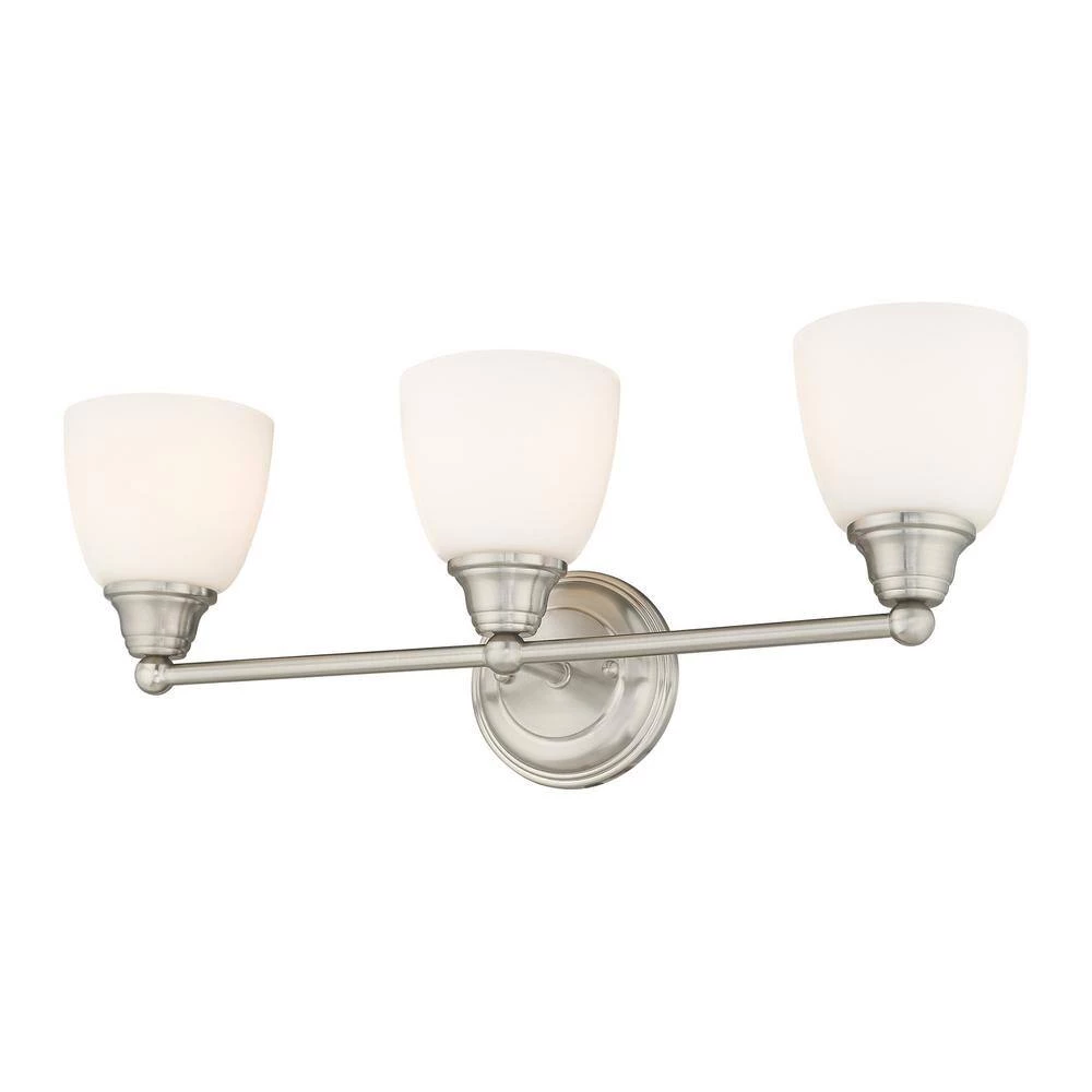 Brighten your space with this Somerville 3-Light Bath Vanity Light. Satin opal white glass shades with a brushed nickel finish create soft illumination and an elegant visual. With all necessary hardware and instructions, you can easily install this fixture upwards or downwards.