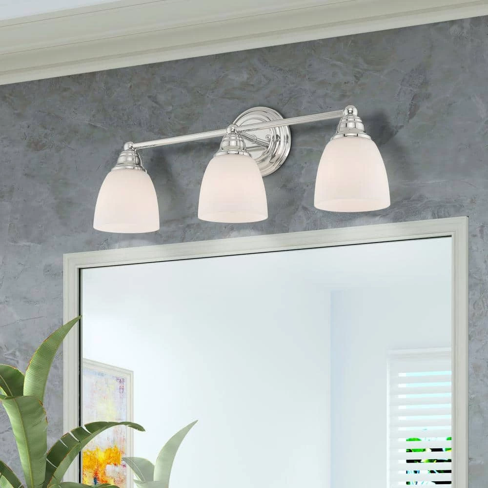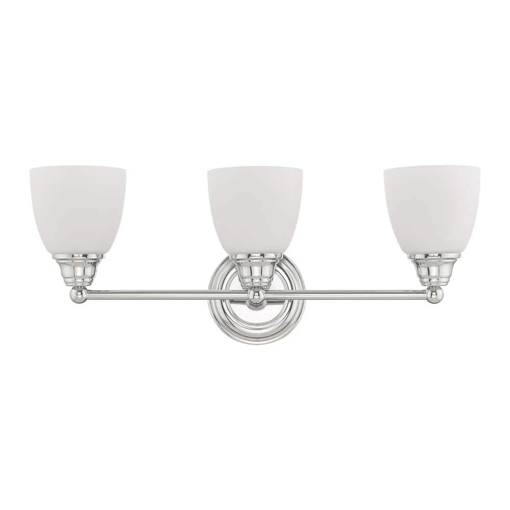 Livex Lighting is well known for quality, style and value. Not quite contemporary, not fully traditional. Intriguing concepts of basic shapes complement a polished chrome finish and hand blown satin opal white glass. May be installed with glass facing up or down. This well-rounded fixture is sure to satisfy your lighting needs.