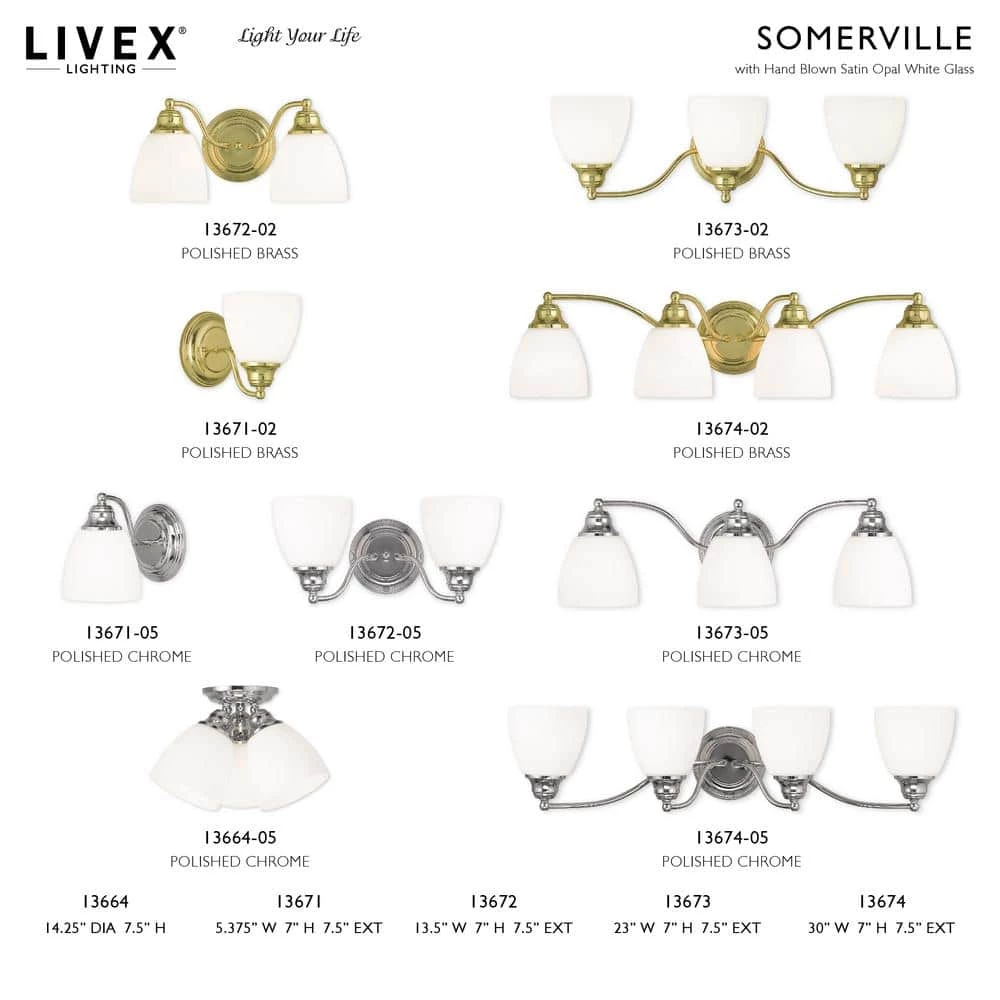 Livex Lighting is well known for quality, style and value. Not quite contemporary, not fully traditional. Intriguing concepts of basic shapes complement a polished chrome finish and hand blown satin opal white glass. This well-rounded fixture is sure to satisfy your lighting needs.