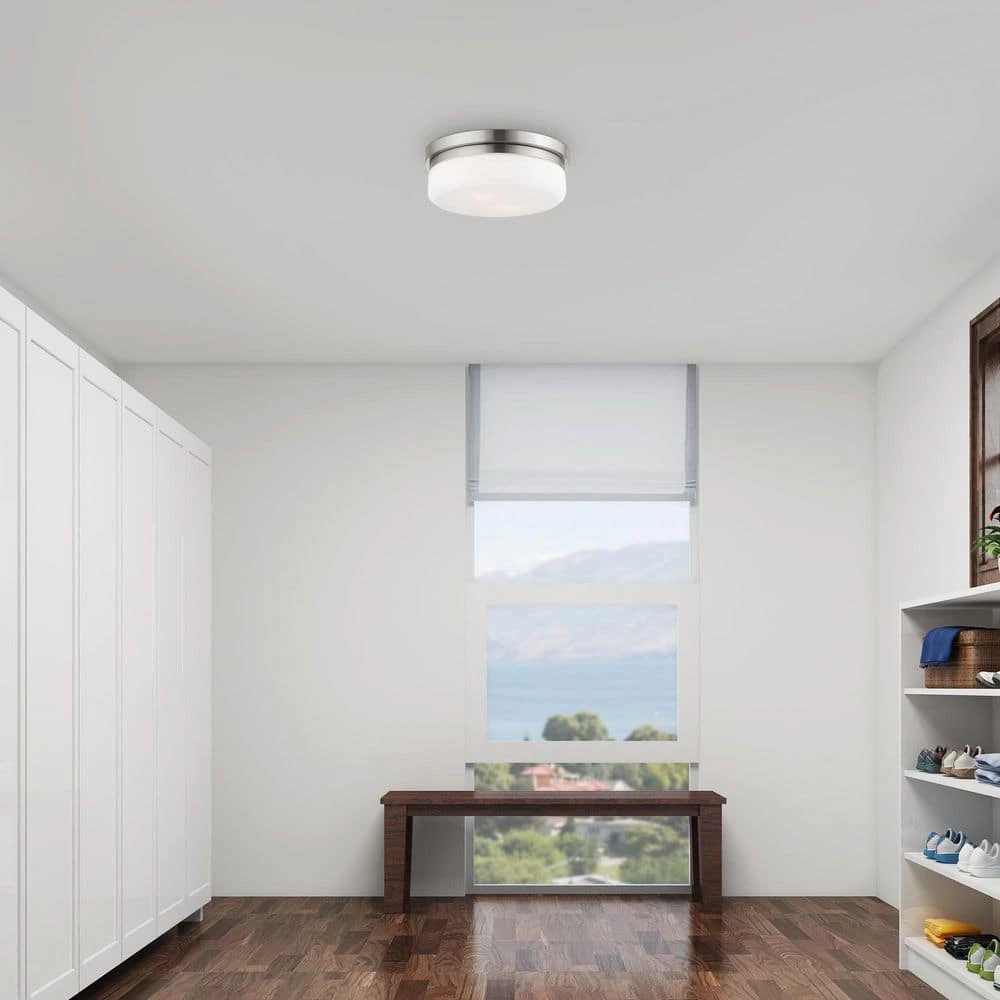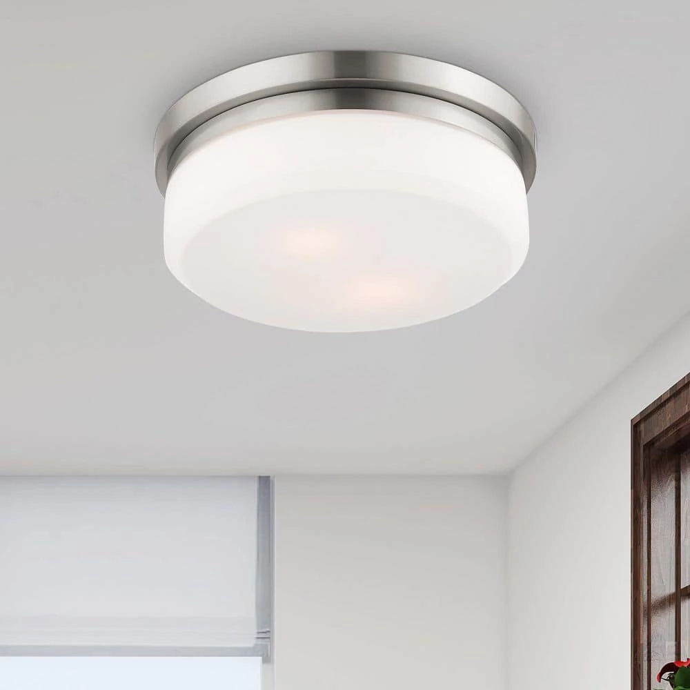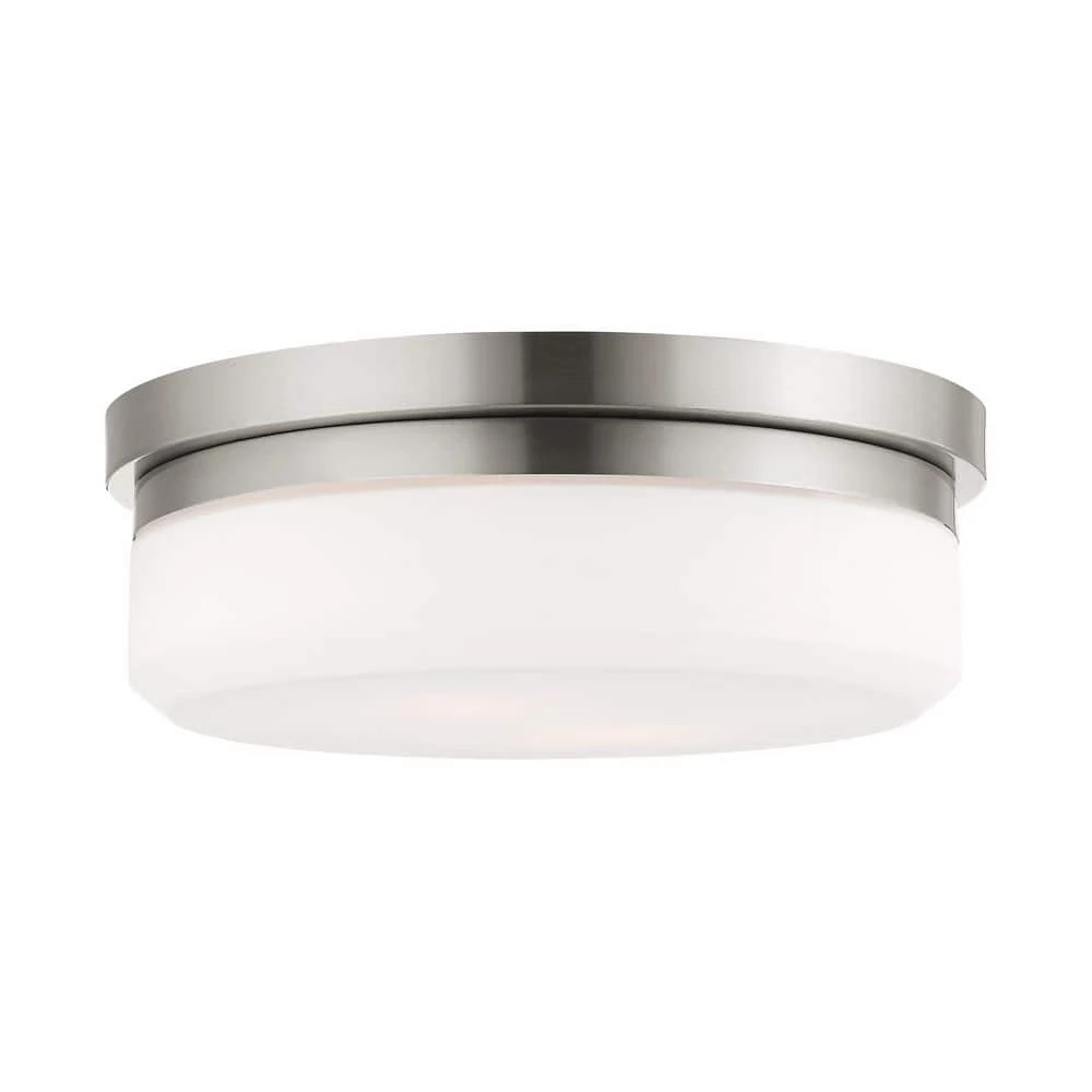 Livex Lighting is well known for quality, style and value. This flush mount from the Stratus collection offers bright lighting in a simple, unadorned style. Rounded hand blown satin opal white glass seems to float over a brushed nickel frame. This well-rounded fixture is sure to satisfy your lighting needs.