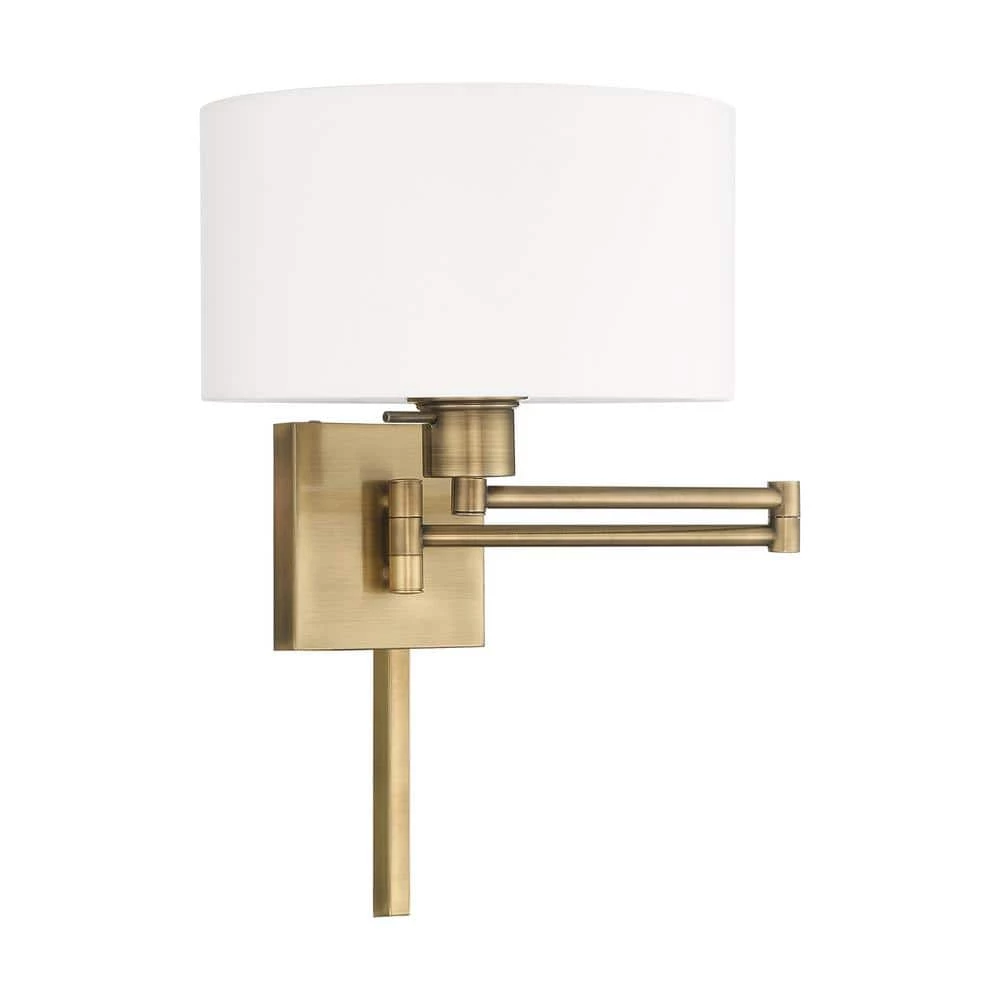 Livex Lighting is well known for quality, style and value. Add this versatile swing arm wall lamp bedside or above a favorite reading chair to enjoy more light where you need it. The antique brass finish is transitional while the off-white fabric shade offers subtle texture. This well-rounded fixture is sure to satisfy your lighting needs.