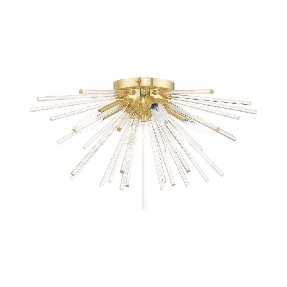 Livex Lighting is well known for quality, style and value. The Utopia 4 light ceiling mount will become an attention-grabbing feature in your modern home decor. The satin brass finish graces the design with elegance and charm, providing a traditional quality to the appearance. The clear crystal rods gives the ceiling mount a sleek and attractive style. This well-rounded fixture is sure to satisfy your lighting needs.