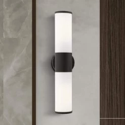 Lindale 18.5 in. 2-Light Satin Brass ADA Vanity Light with Satin Opal White Glass by Livex Lighting
