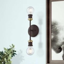 Lansdale 2-Light Bronze ADA Vanity Sconce with Antique Brass Accents by Livex Lighting