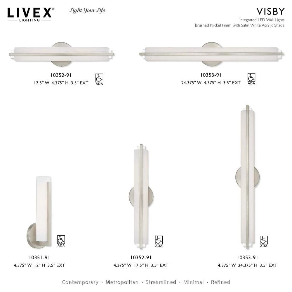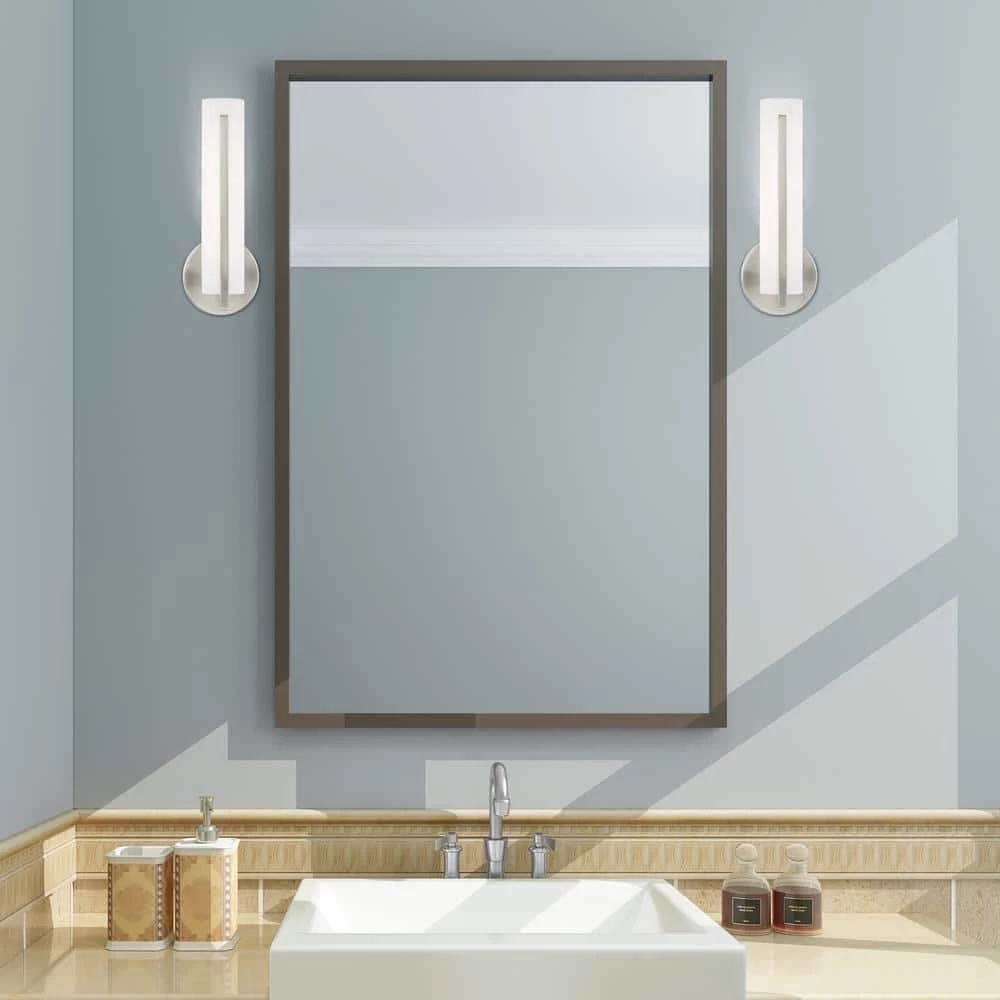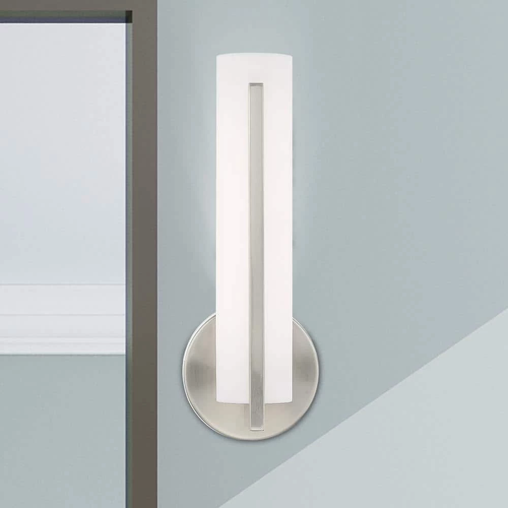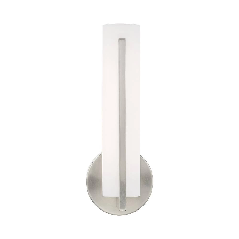 Livex Lighting is well known for quality, style and value. State of the art LED components deliver superior quality of light for the bathroom area while the sleek design and brushed nickel finish adds sophistication with a modern look. The satin white cylindrical acrylic diffuses the light to provide a soft glow. This well-rounded fixture is sure to satisfy your lighting needs.