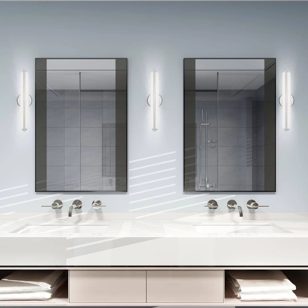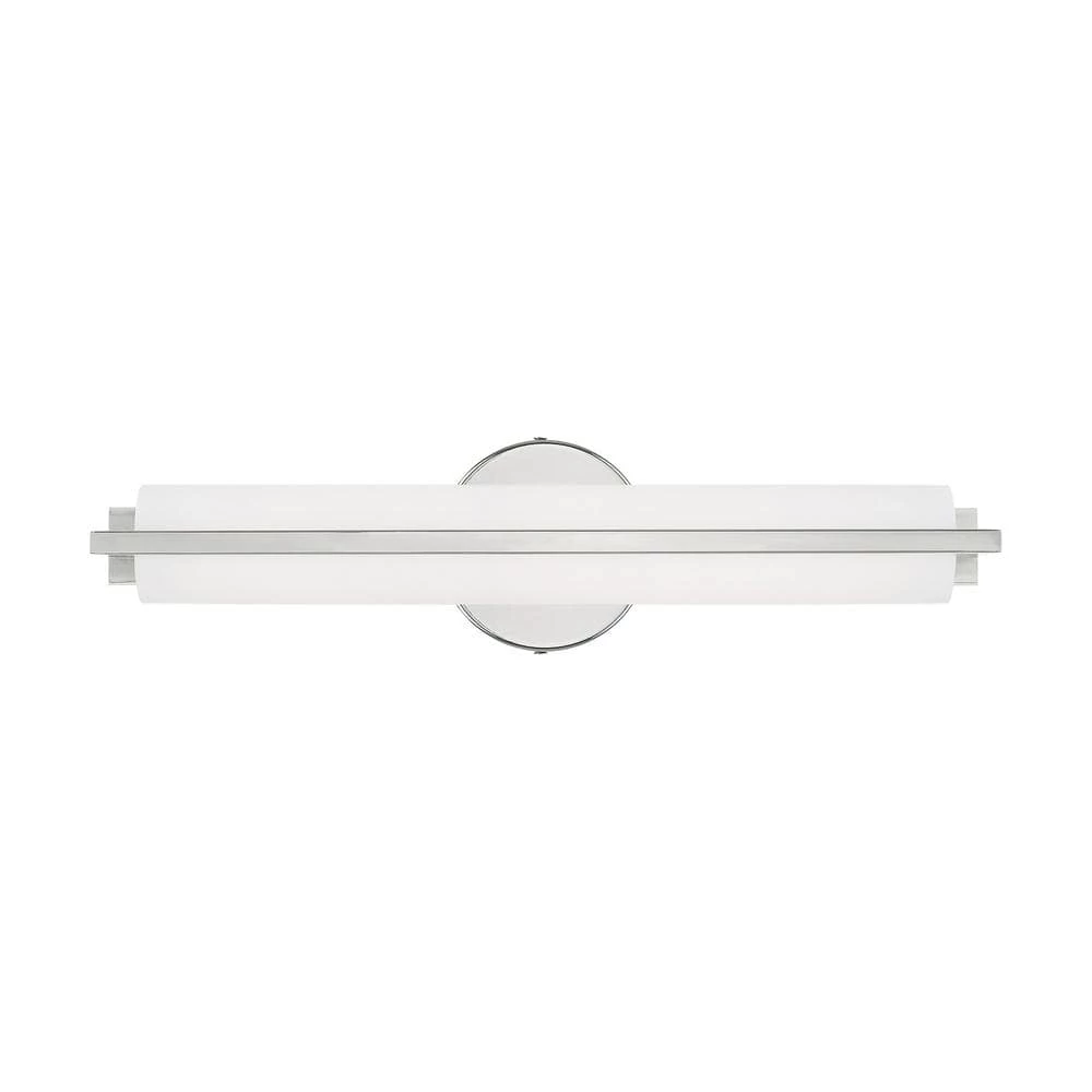 Livex Lighting is well known for quality, style and value. State of the art LED components deliver superior quality of light for the bathroom area while the sleek design and polished chrome finish adds sophistication with a modern look. The satin white cylindrical acrylic diffuses the light to provide a soft glow. Can be installed vertically or horizontally. This well-rounded fixture is sure to satisfy your lighting needs.
