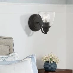 Montgomery 1-Light Black Vanity Sconce with Hand Blown Clear Glass by Livex Lighting