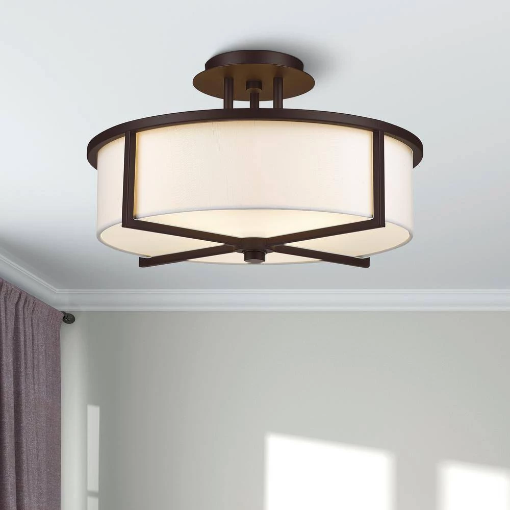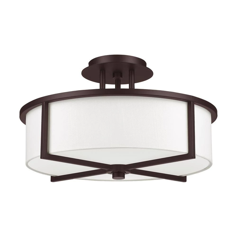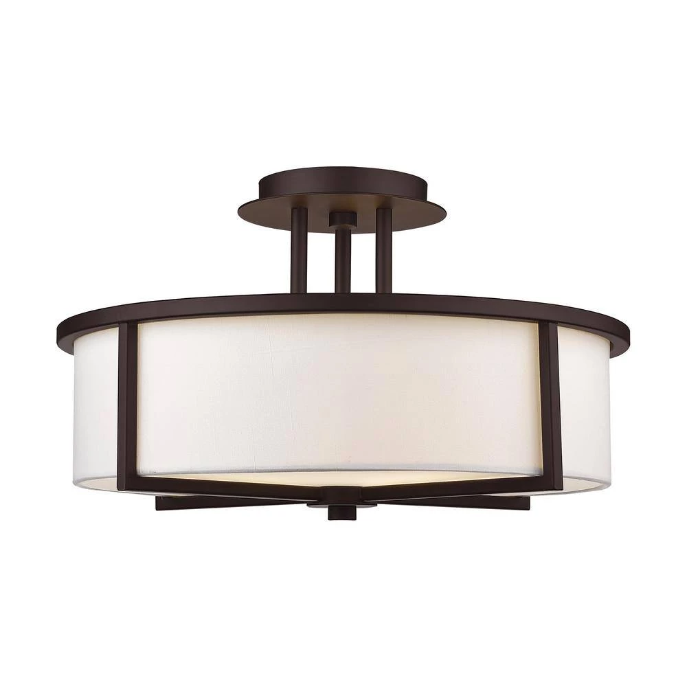 Light up your home with the soft glow of this Wesley 3 Light Flush Mount by Livex Lighting. It offers a handcrafted, off-white fabric hardback shade with a drum shape, creating a modern look. The bronze finish adds an elegant appeal to your lighting. Included instructions and hardware allow a simple installation. Built to last, this flush mount features metal construction.
