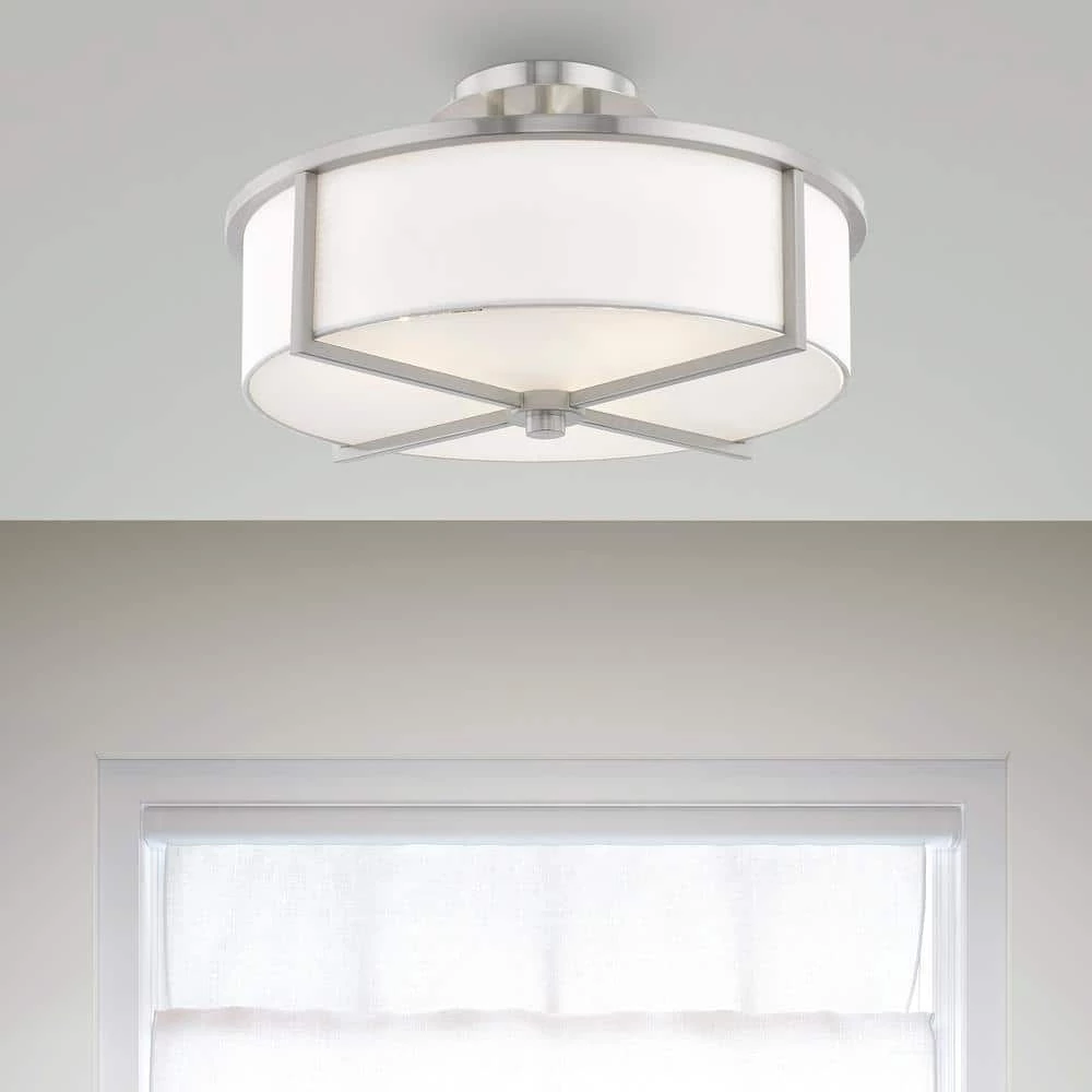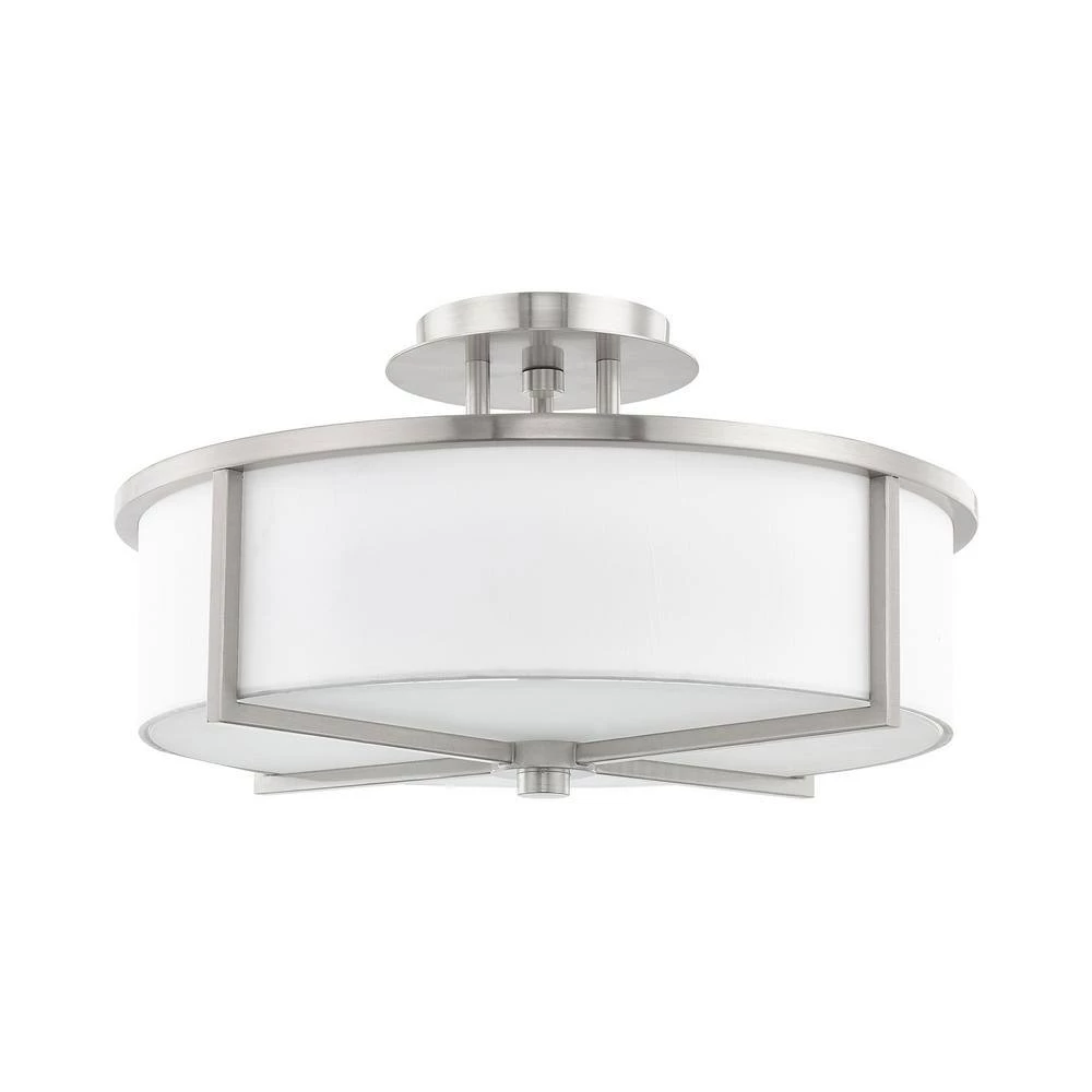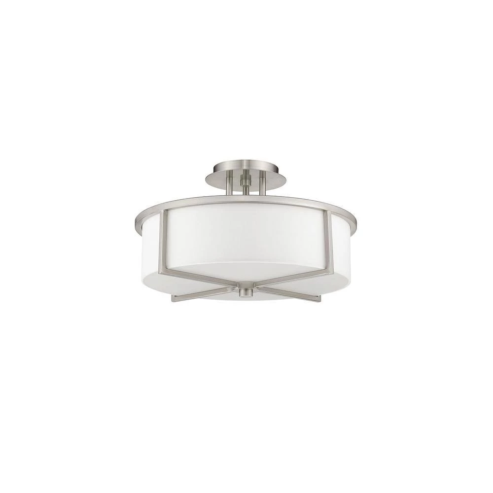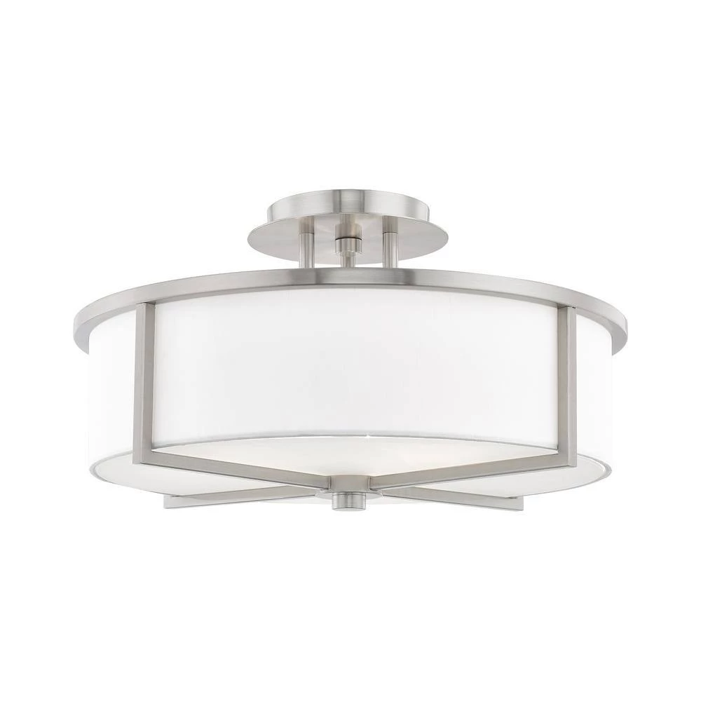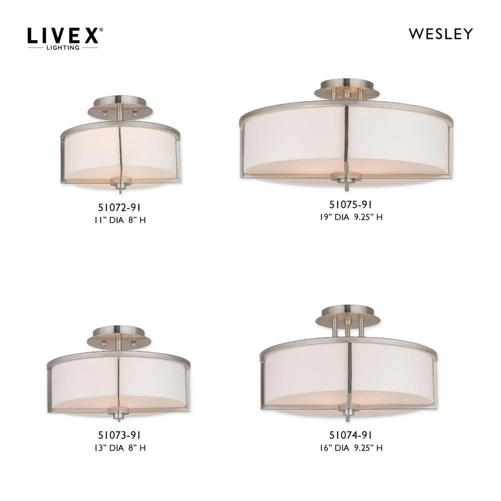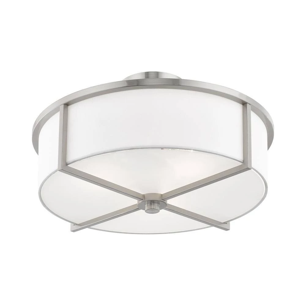 Light up your home with the soft glow of this Wesley 3 Light Flush Mount by Livex Lighting. It offers a handcrafted, off-white fabric hardback shade with brushed nickel finish adding an elegant look to your lighting. Included instructions and hardware allow a simple installation.