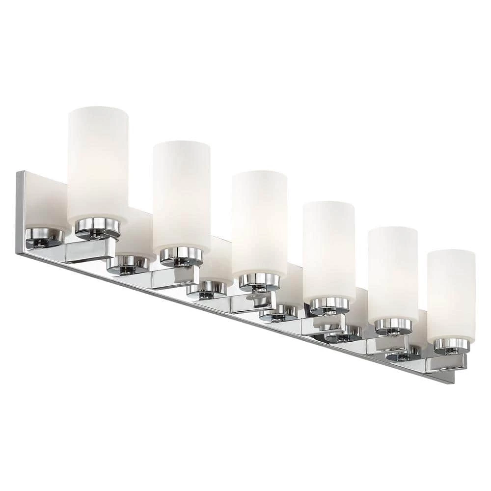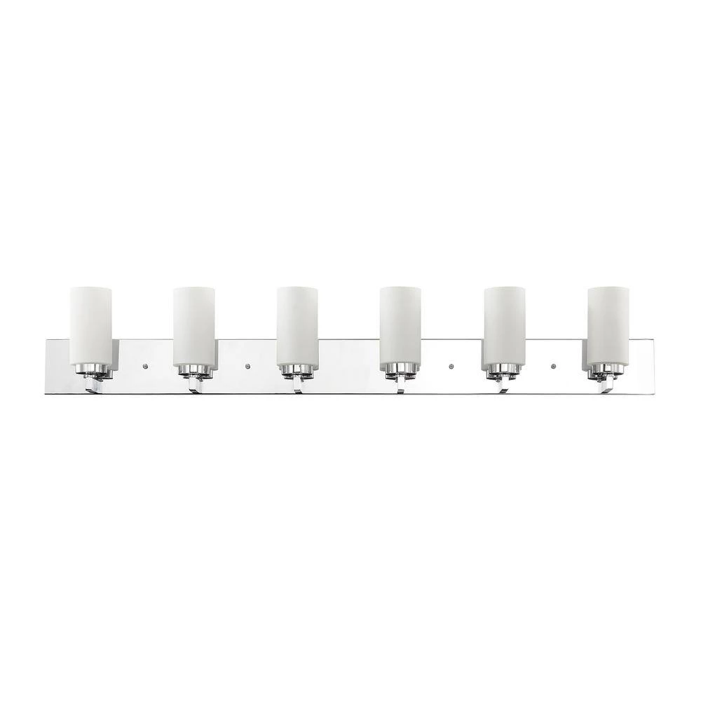 Brighten your space with this West Lake 6-Light Bath Vanity Light. Satin opal white glass shades with a sleek chrome finish create a soft glow and a sophisticated visual. With all necessary hardware and instructions, you can easily install this fixture upwards or downwards.