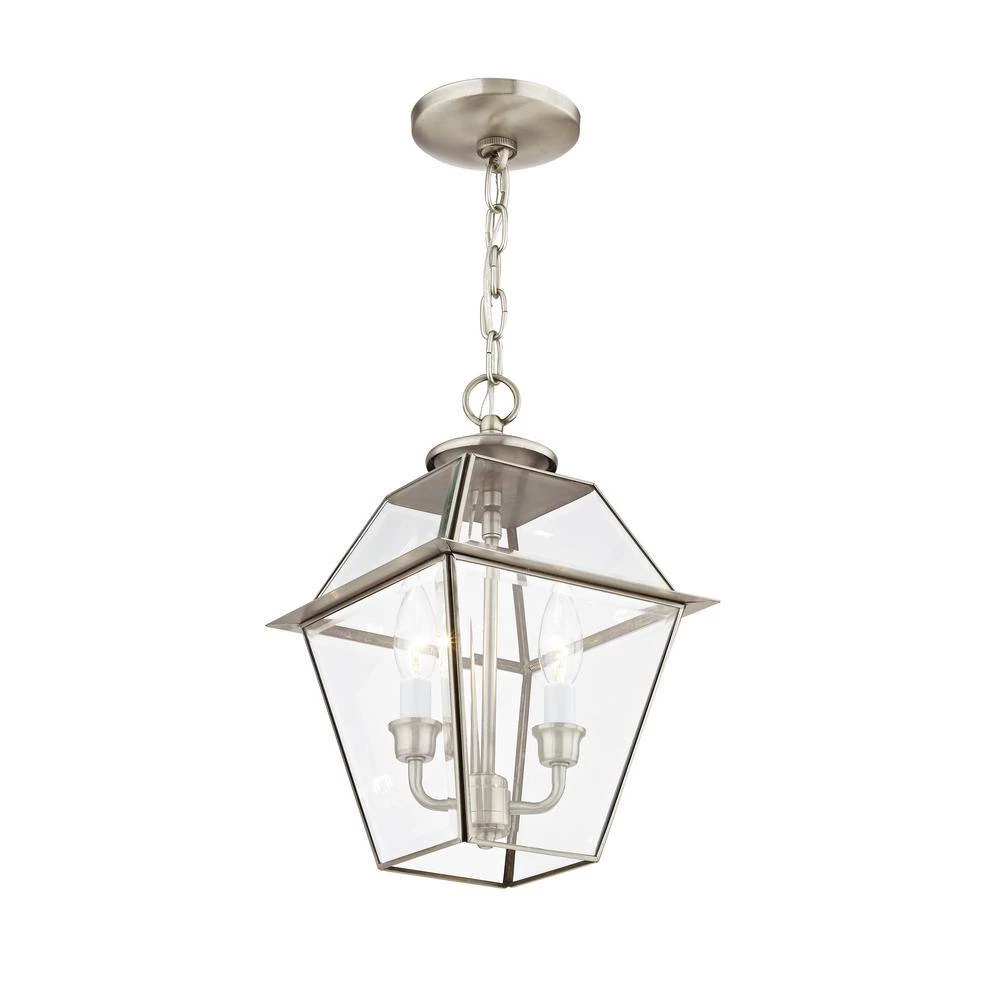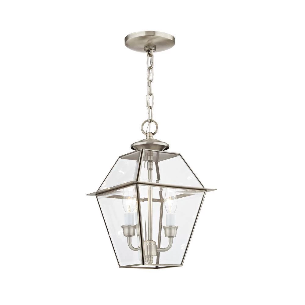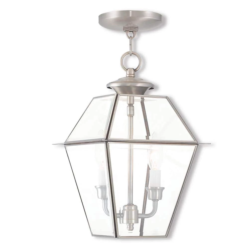 Inspired by the historic look and romantic feel of gas-burning lamps, the Westover collection is reminiscent of antique gas lights still popular in Southern cities like Charleston and New Orleans. This solid brass piece features two lights behind large panes of clear beveled glass.