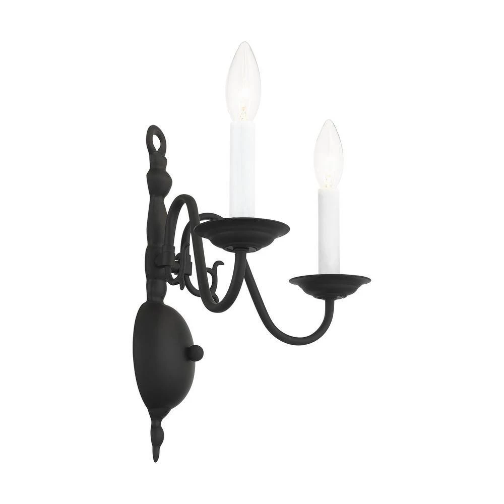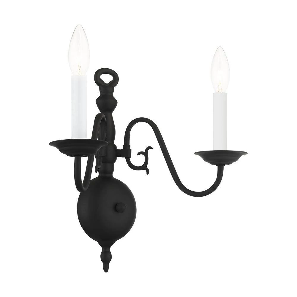 Livex Lighting is well known for quality, style and value. Simple, yet refined, this traditional, colonial wall sconce is a perennial favorite. Part of the Williamsburgh series, this handsome double light sconce is a timeless beauty. It is shown in a black finish. This well-rounded fixture is sure to satisfy your lighting needs.