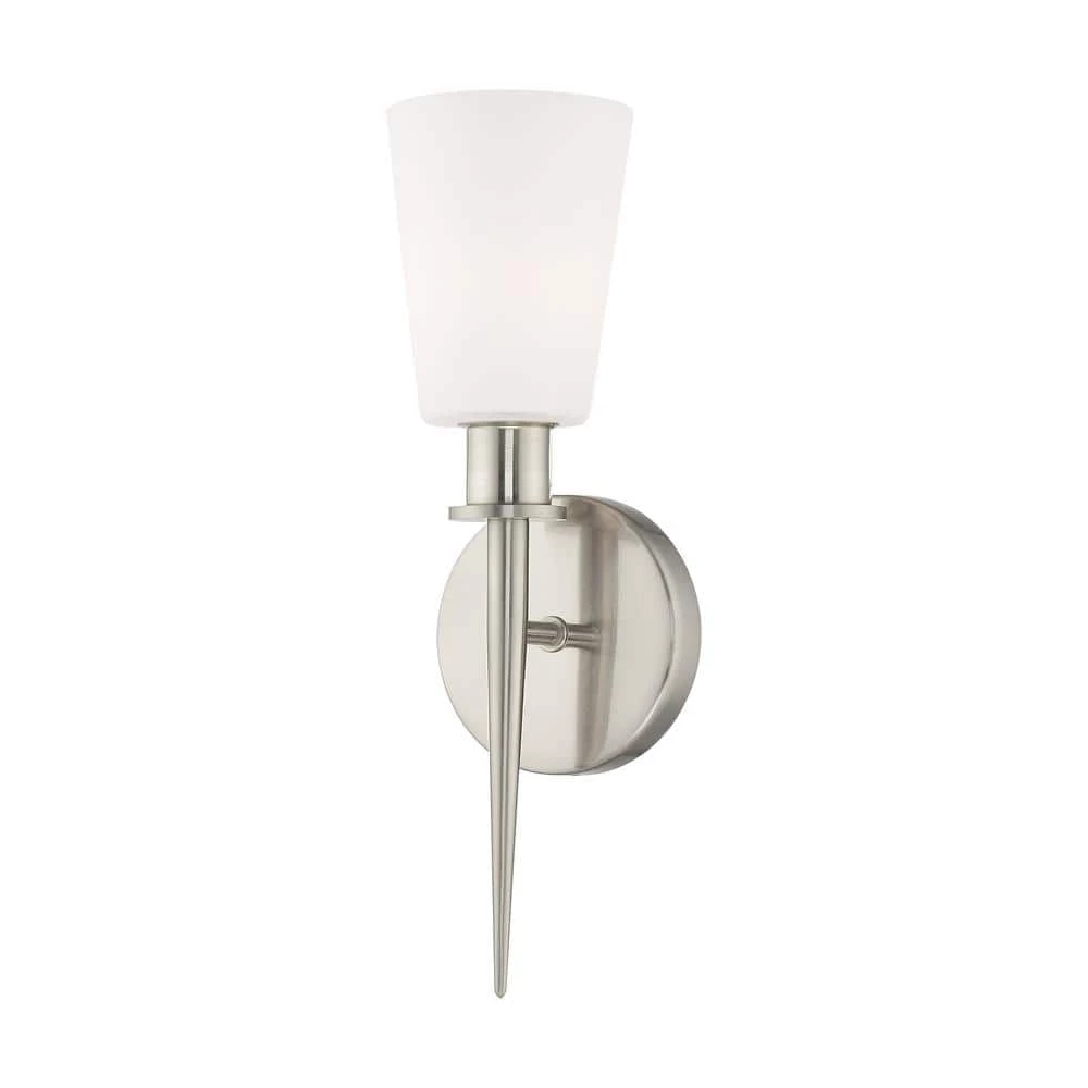 Livex Lighting is well known for quality, style and value. A contemporary sconce with a brushed nickel finish, the Witten features an opal white glass shade which takes it to another level of sophistication. This well-rounded fixture is sure to satisfy your lighting needs.