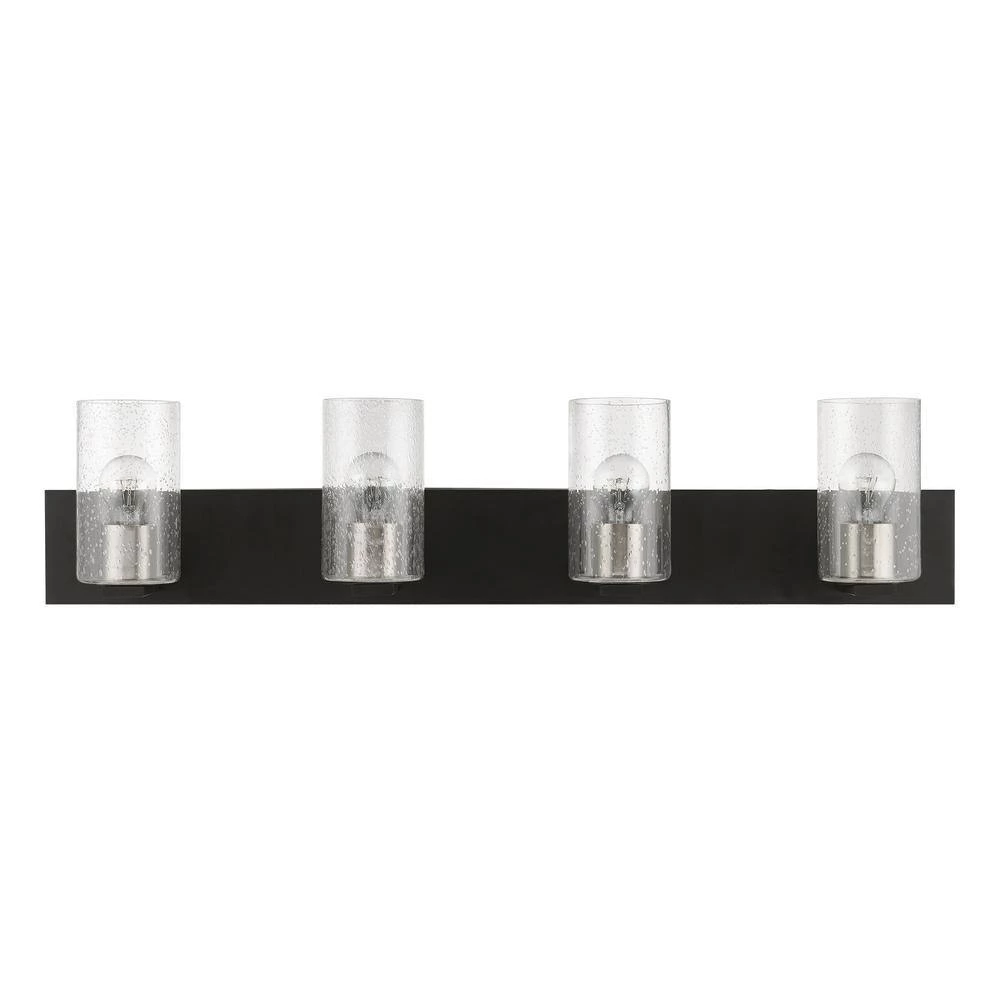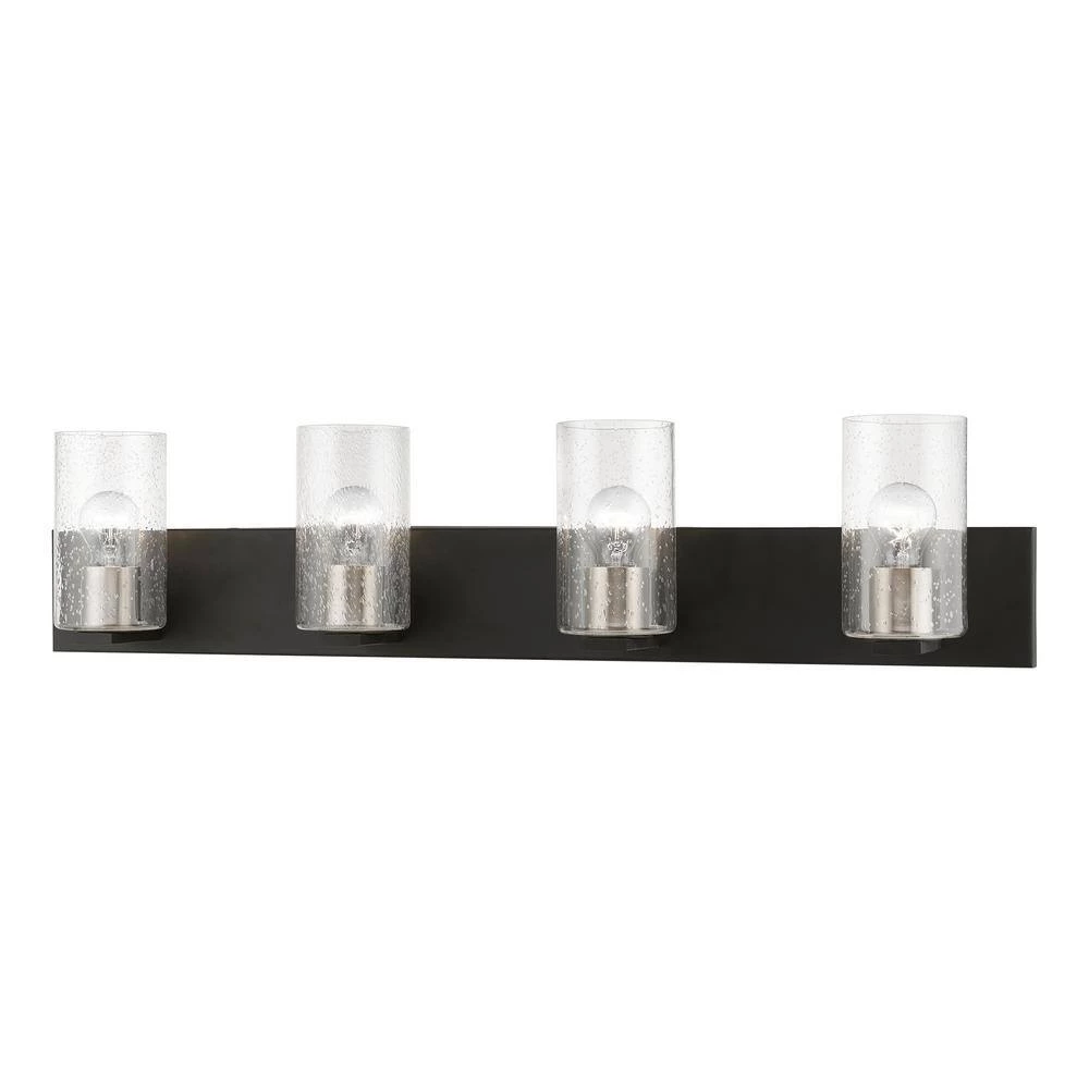 Illuminate your home with a bright design from the Zurich collection. This 4-light vanity sconce features a black finish with brushed nickel finish accents and clear seeded glass. Perfect for a contemporary or transitional luxury bathroom, bedroom or hallway setting.
