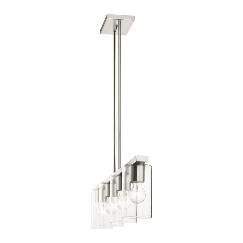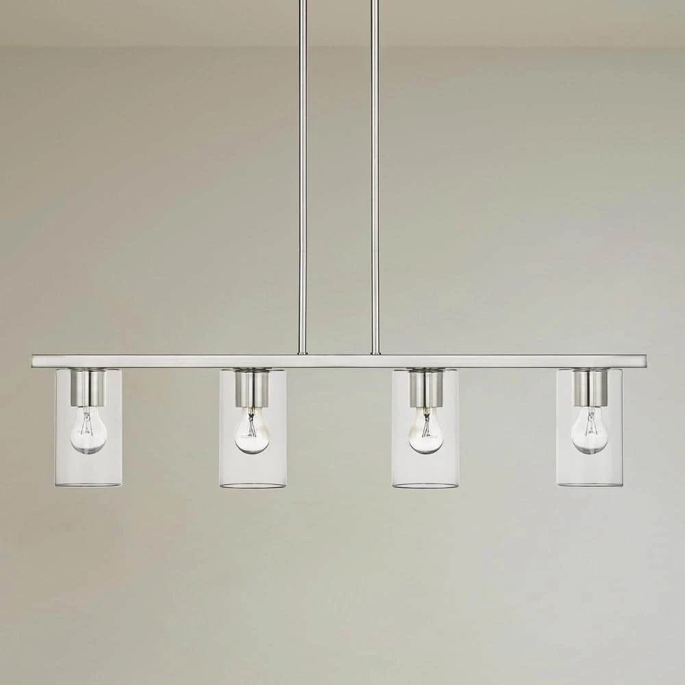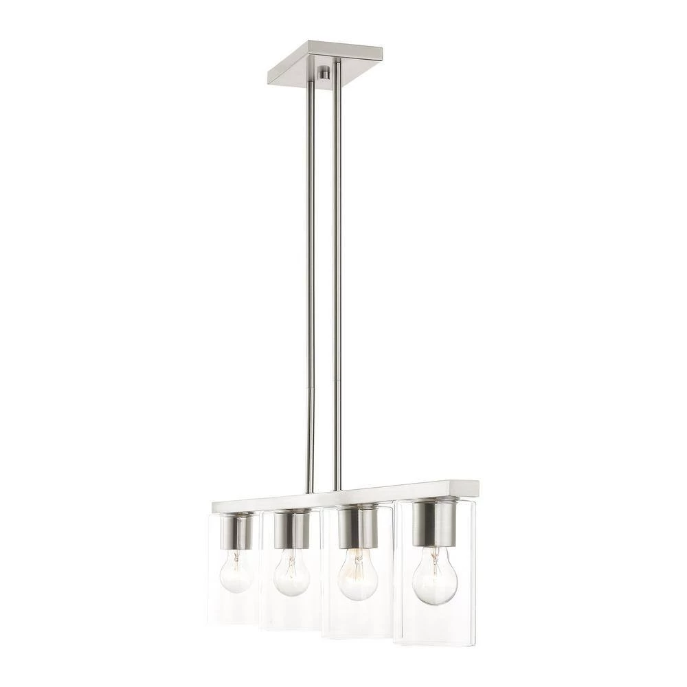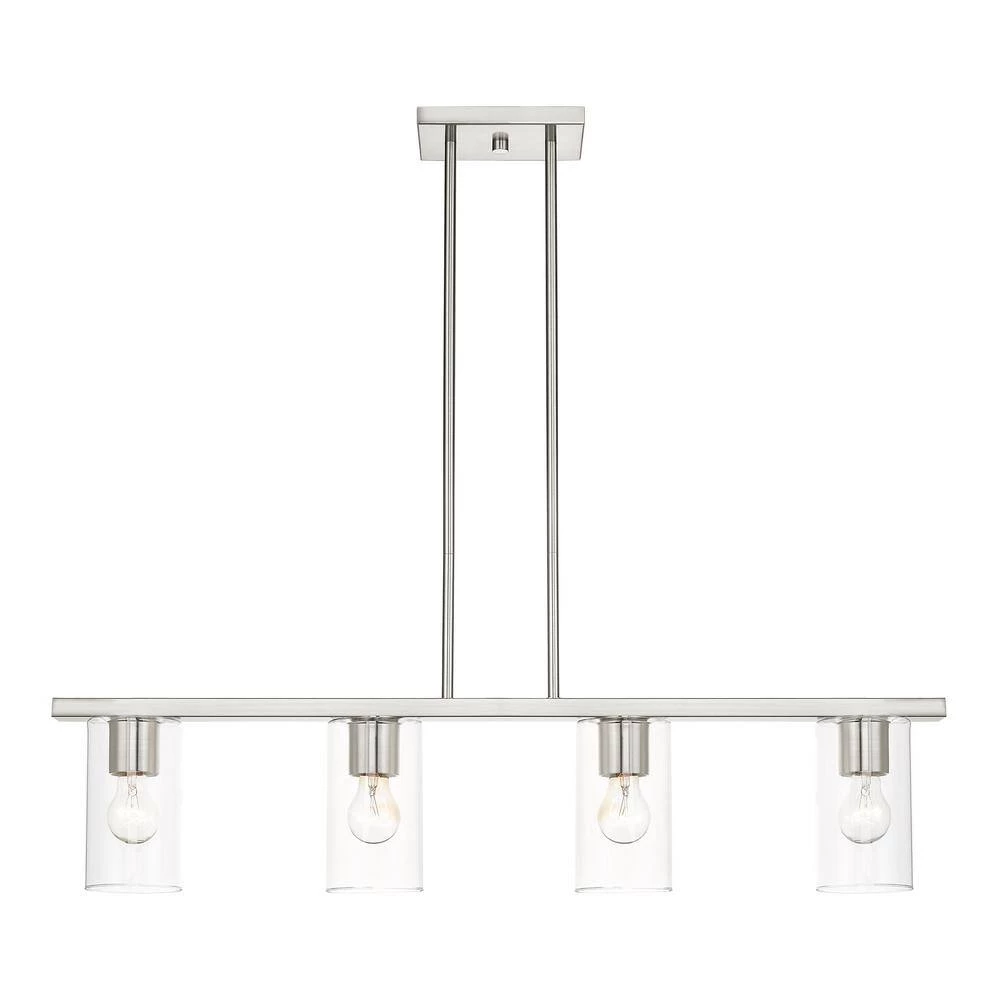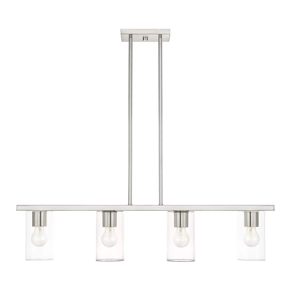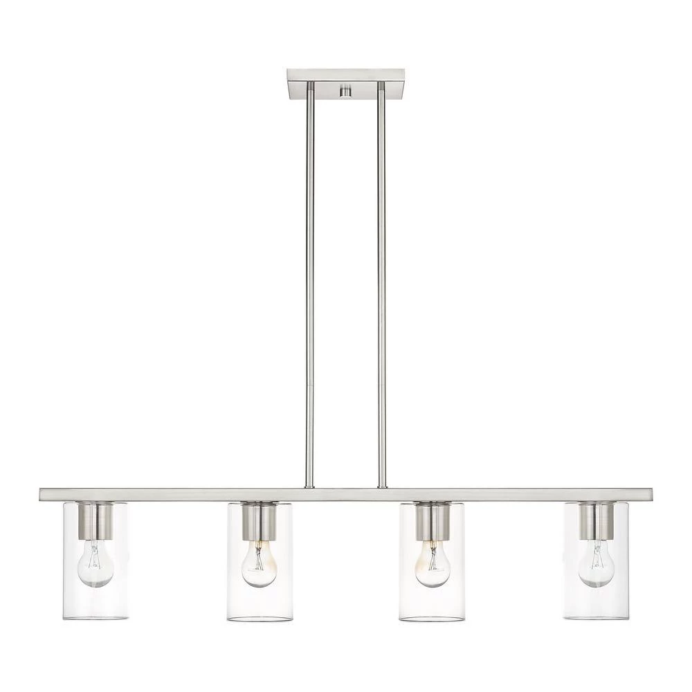 Livex Lighting is well known for quality, style and value. Illuminate your home with a bright design from the Zurich collection. This 4-light down linear chandelier features a brushed nickel finish with clear glass. Perfect for a contemporary or transitional luxury kitchen or dining room setting. This well-rounded fixture is sure to satisfy your lighting needs.