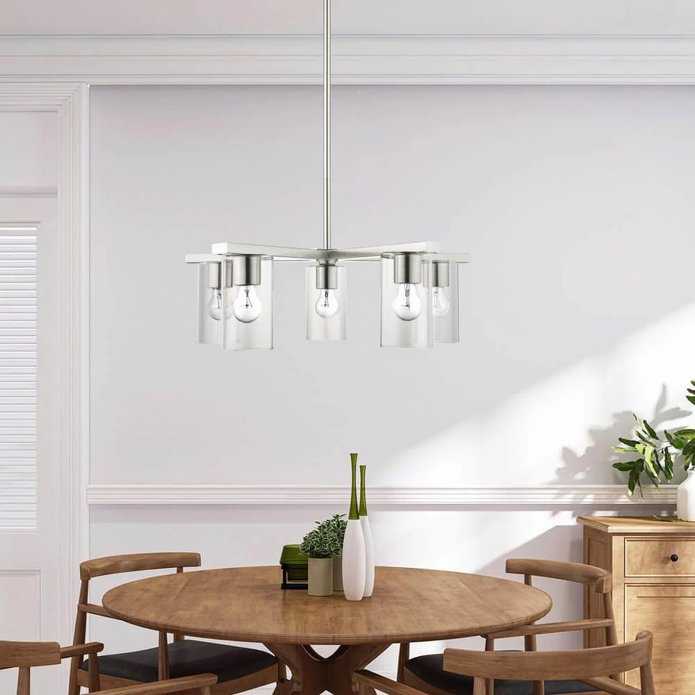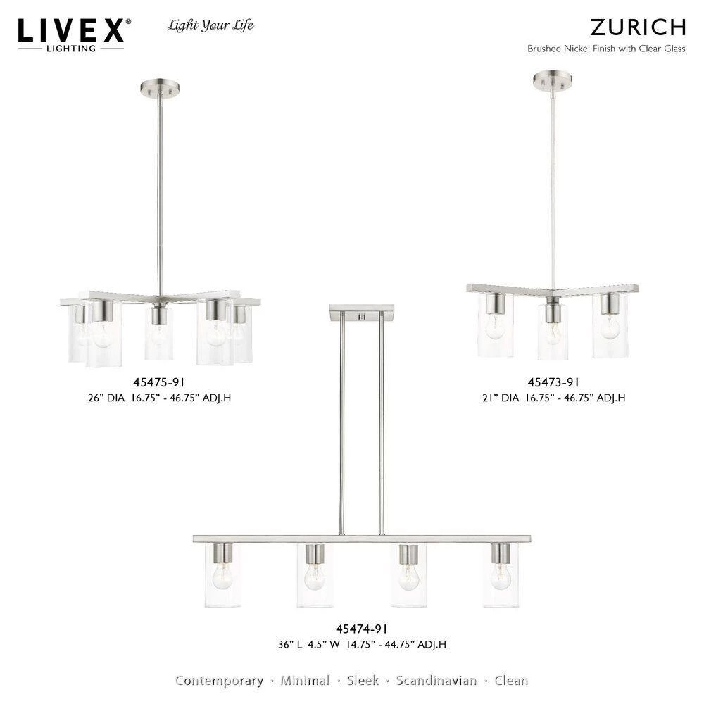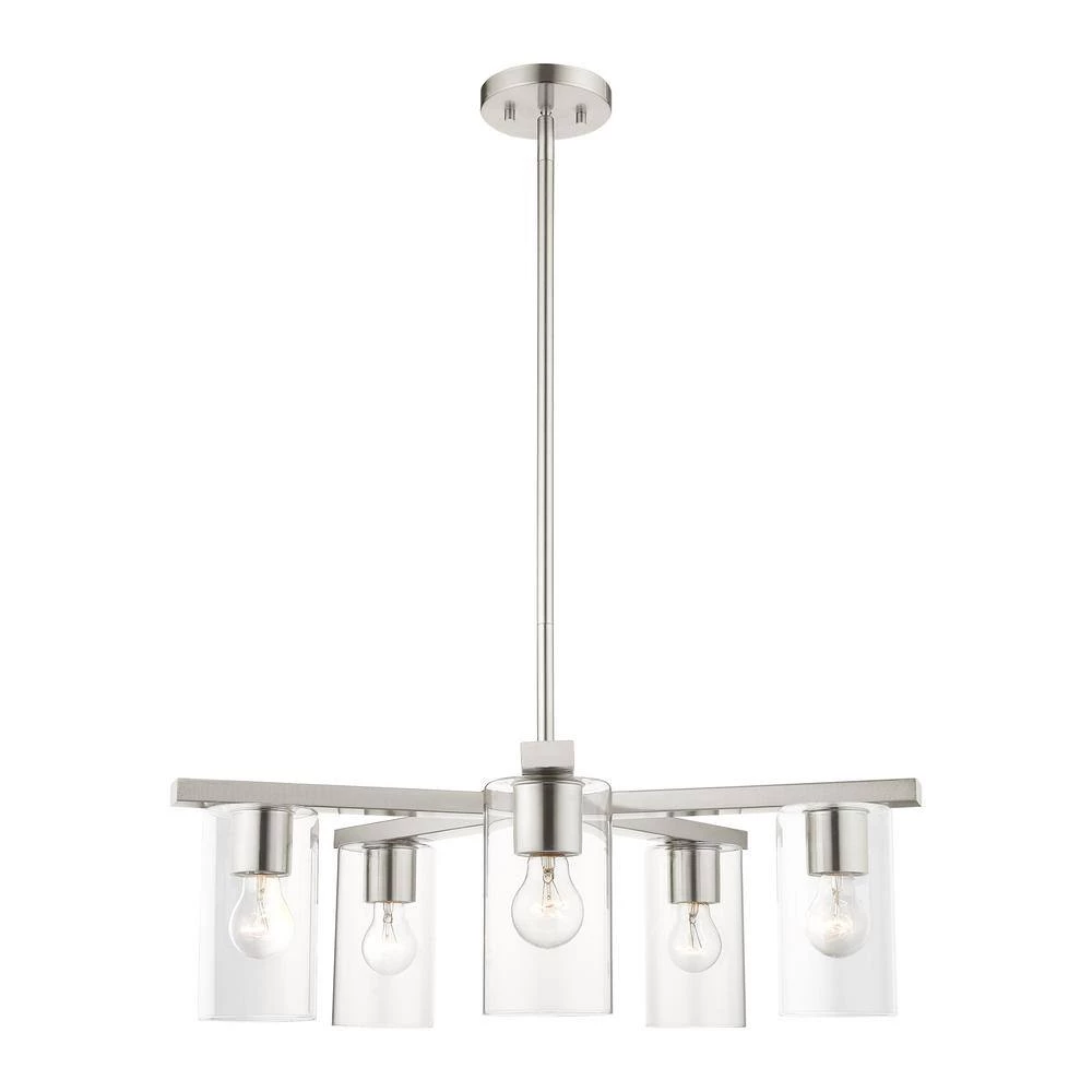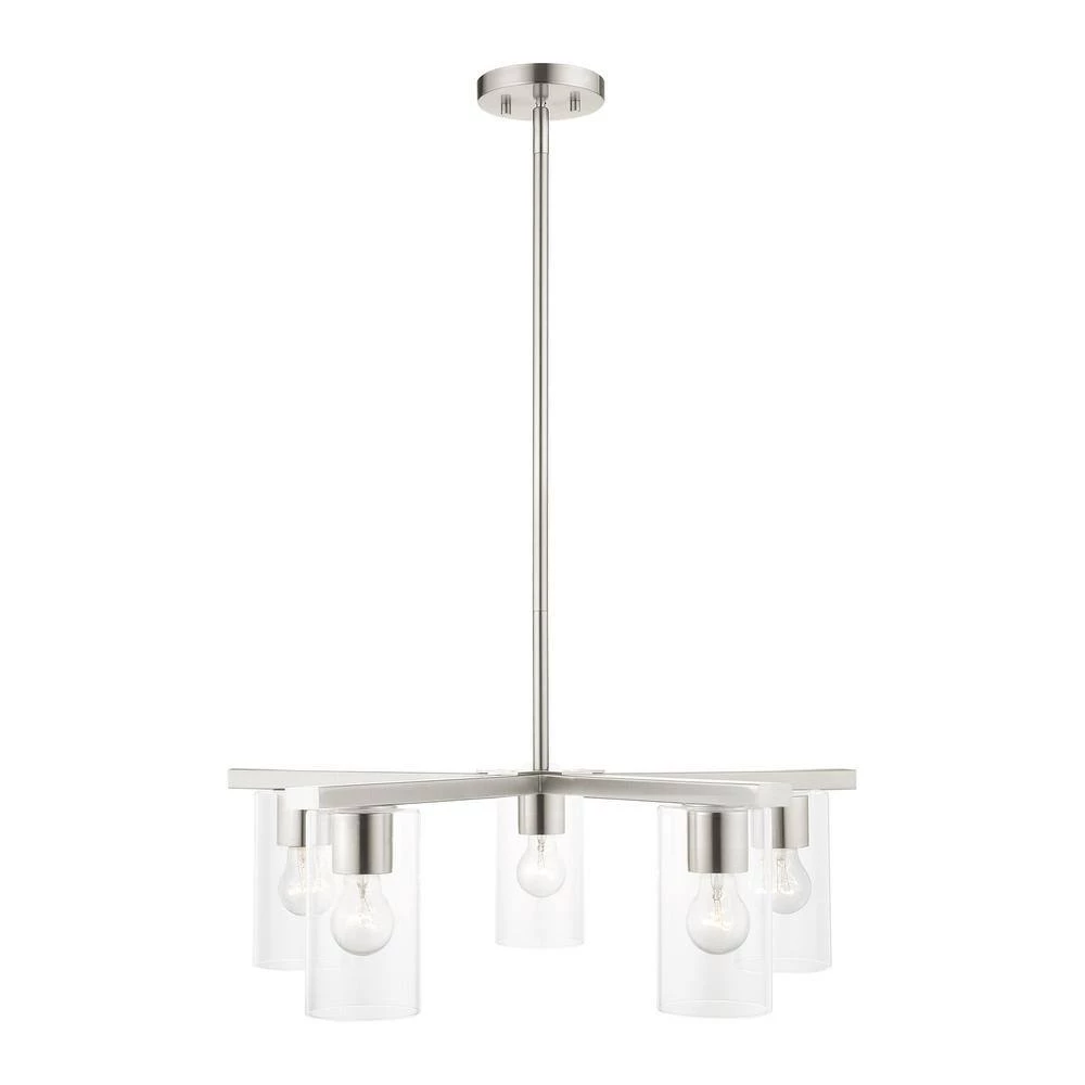 Livex Lighting is well known for quality, style and value. Illuminate your home with a bright design from the Zurich collection. This 5-light down dinette chandelier features a brushed nickel finish with clear glass. Perfect for a contemporary or transitional luxury kitchen or dining room setting. This well-rounded fixture is sure to satisfy your lighting needs.